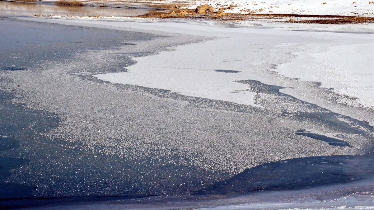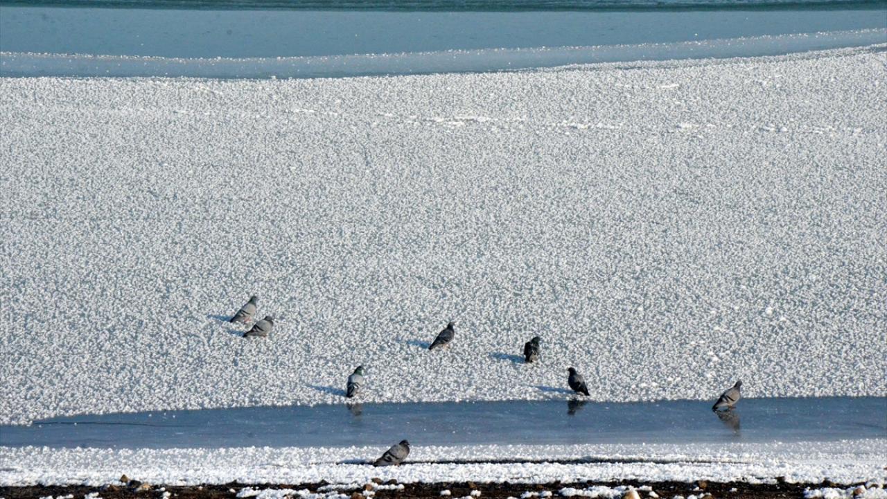 Muş`ta gece saatlerinde sıcaklıkların sıfırın altında 15 dereceye kadar düşmesiyle Alparslan-1 Barajı`nın yüzeyi kısmen dondu.