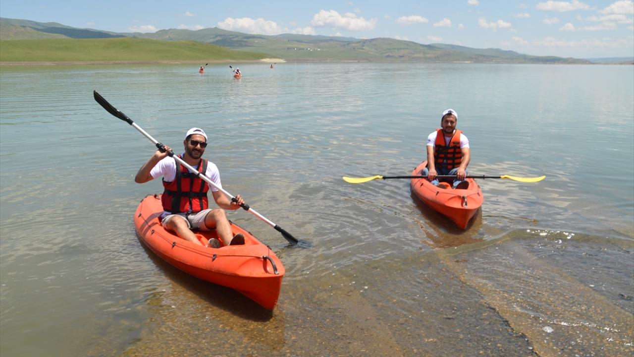 Güvenlik önlemlerinin ardından baraj gölünde bot ve kano süren sporseverler, sağlıklı yaşama dikkat çekti.