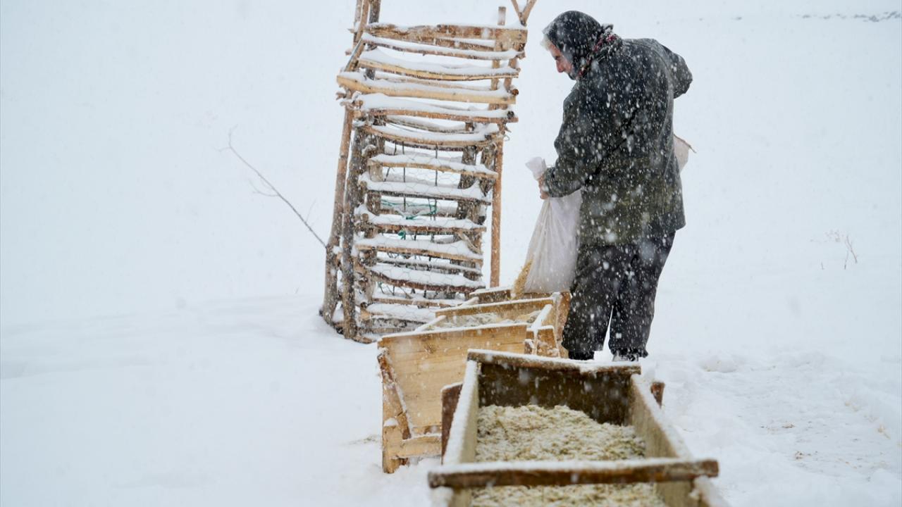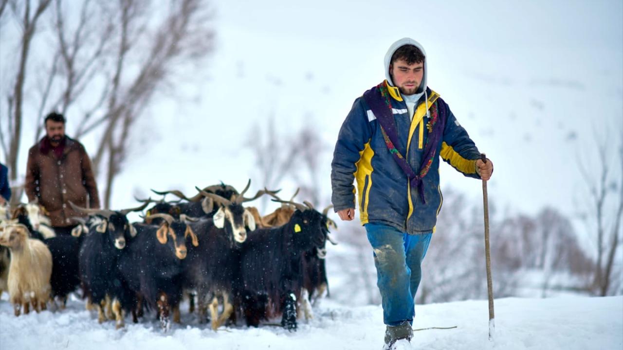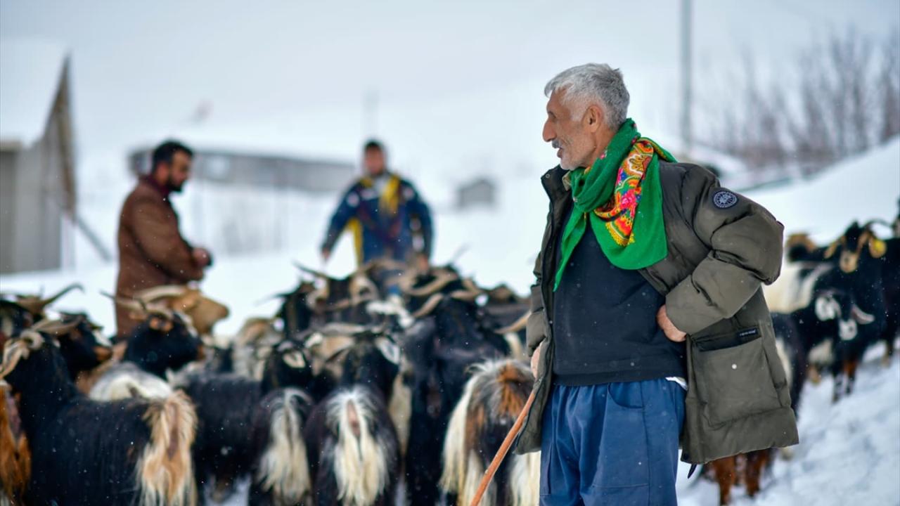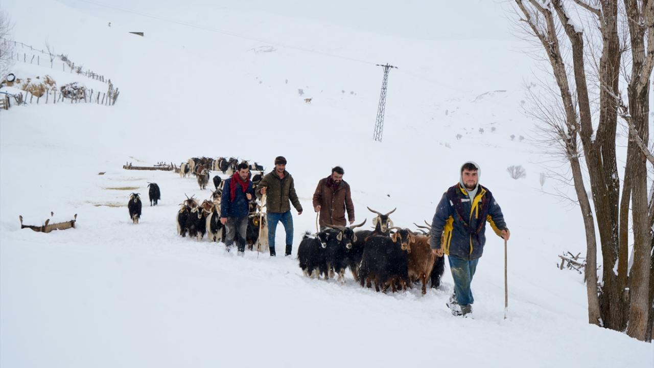 Kışın çetin geçtiği Muş'ta dağ köylerinde besicilik yapan vatandaşlar, kar ve soğuk havada hayvanlarının bakımını gerçekleştiriyor.