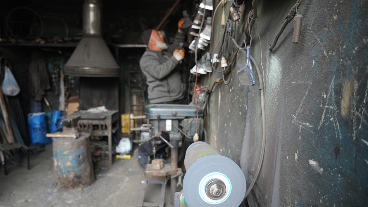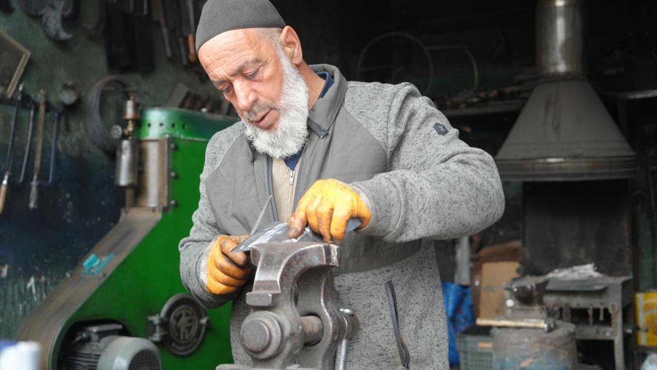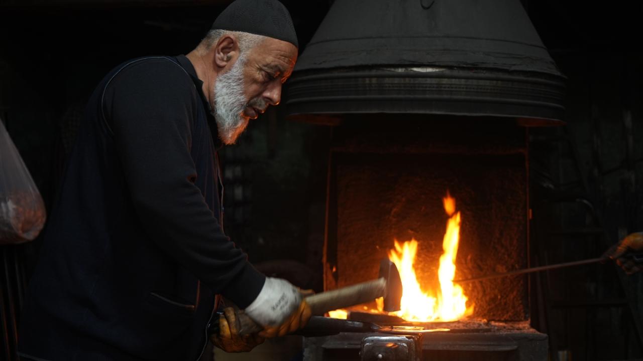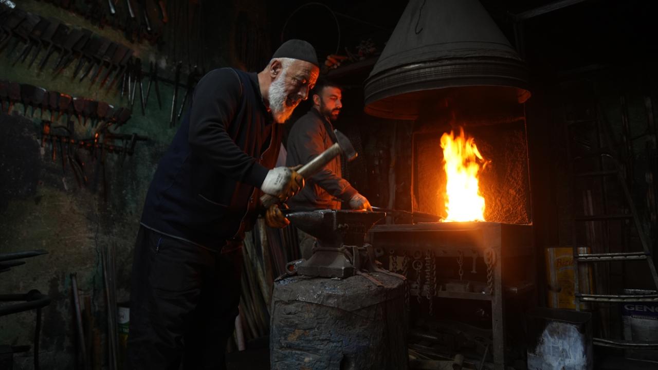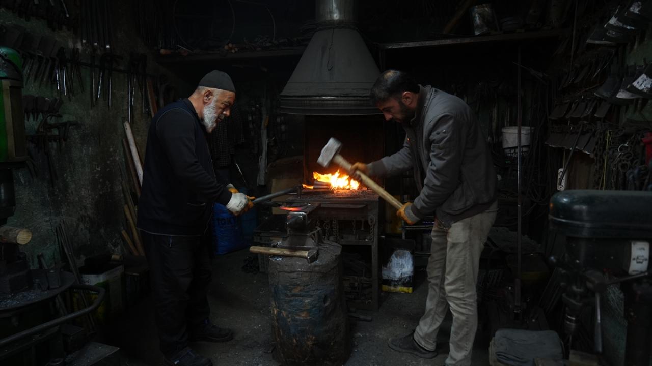 Kale Mahallesi`ndeki Eski Çarşı`da bulunan atölyesinde balta, çekiç, murç, zincir, kapı kolu, kazma ve çapa gibi aletlerin tamirini ve üretimini yapan Pınar, mesleği bugünlere kadar taşıdı.