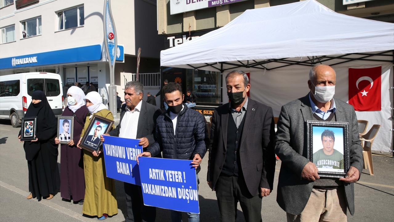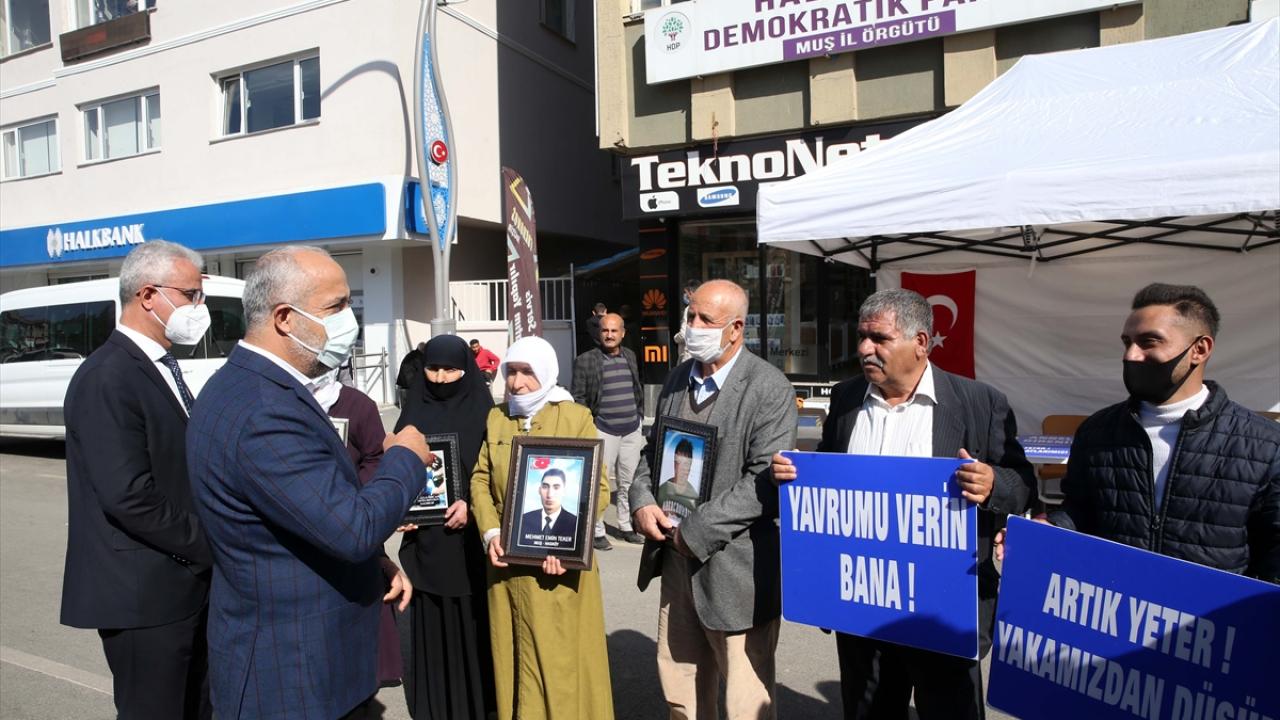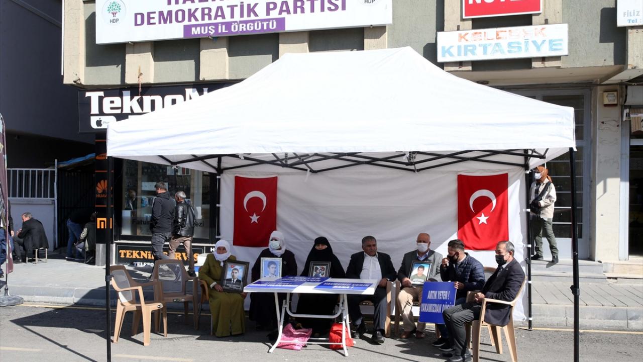 Muş'ta, çocuklarının terör örgütü PKK tarafından dağa kaçırılmasından sorumlu tuttukları HDP'nin il başkanlığı önünde eylem yapan 12 aileye bir aile daha katıldı.