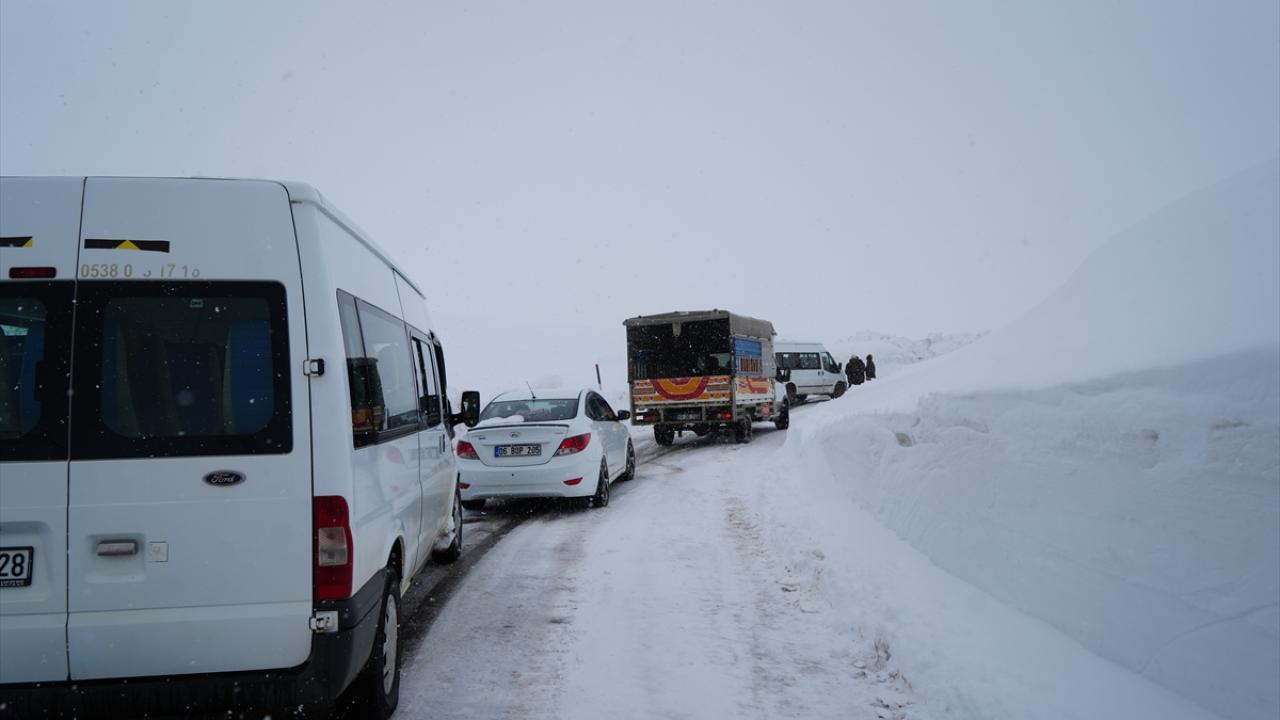 Kara yolunun Kaymakam Çeşmesi yakınında kar ve tipiden dolayı ilerleyemeyen araçlardaki yaklaşık 50 kişi mahsur kaldı.