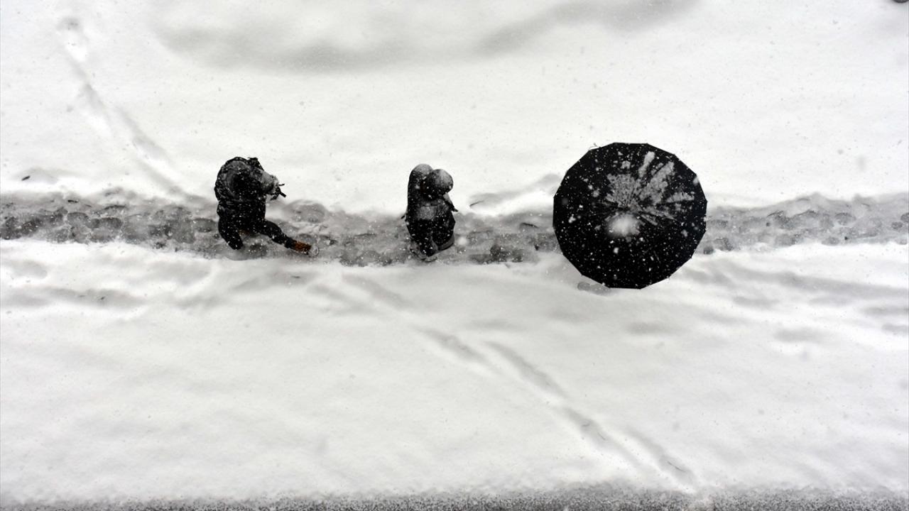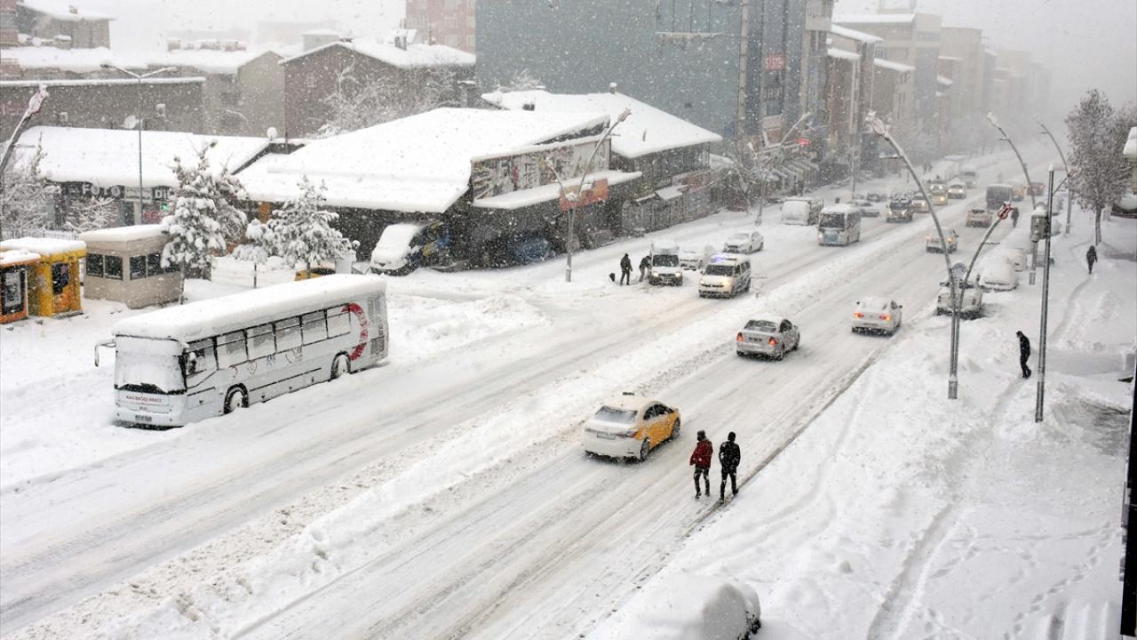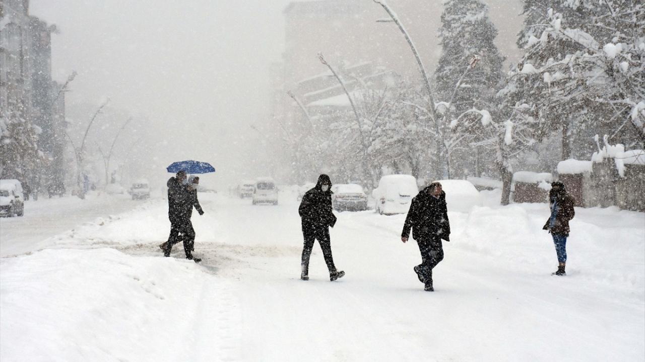 Muş'ta kar yağışı nedeniyle kent merkezi beyaza büründü