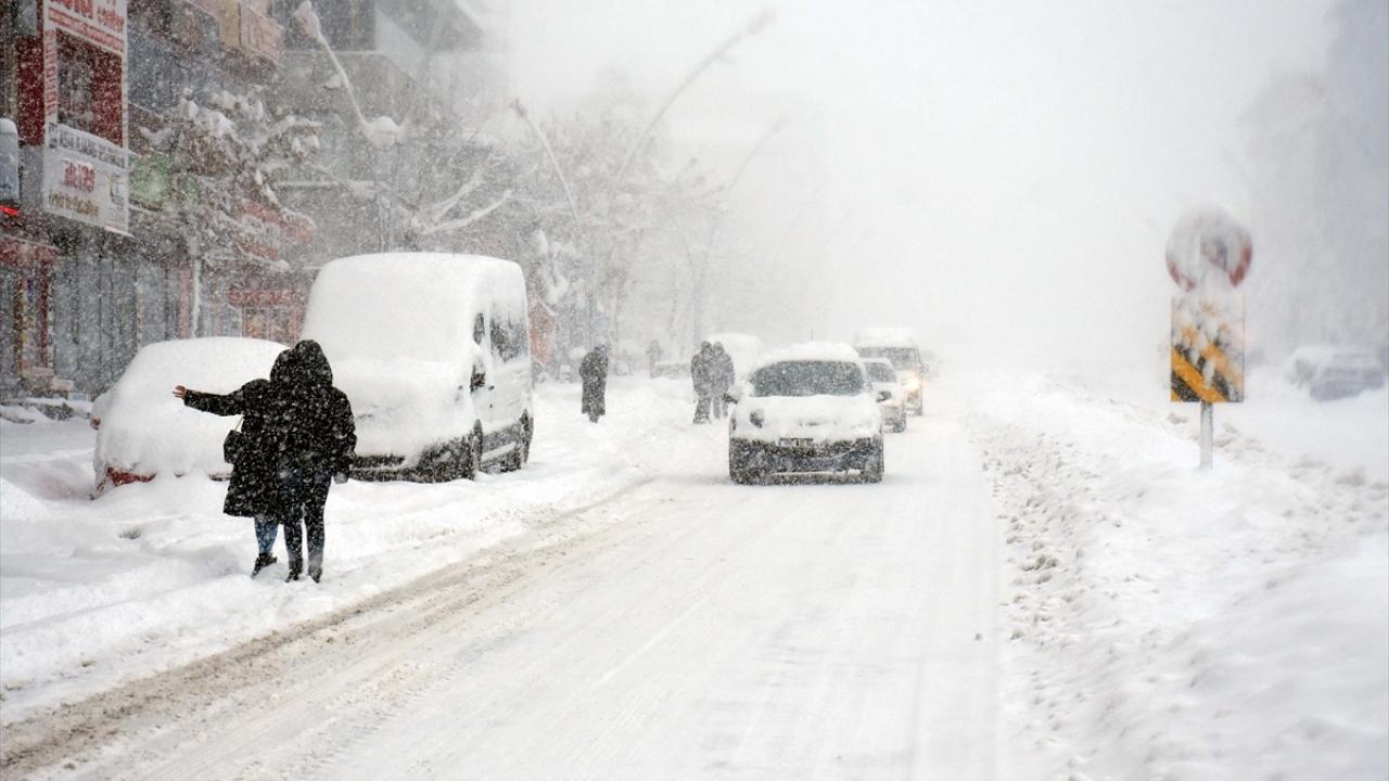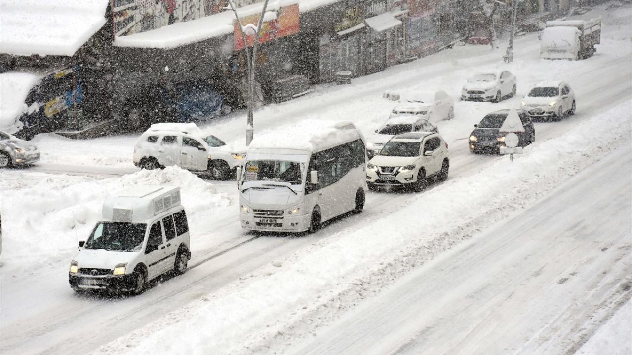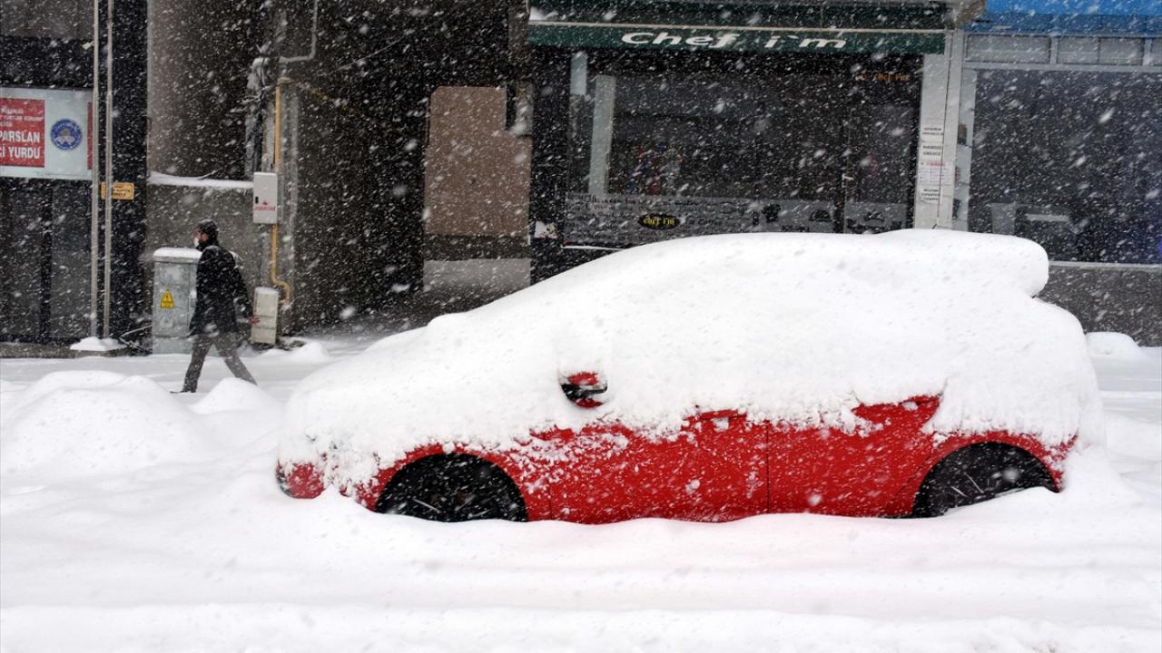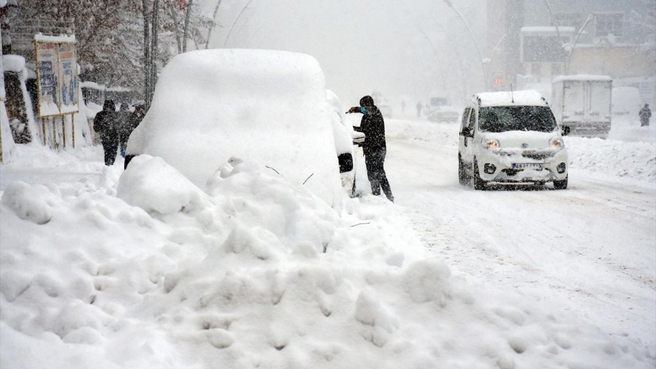 Muş'ta kar yağışı nedeniyle kent merkezi beyaza büründü