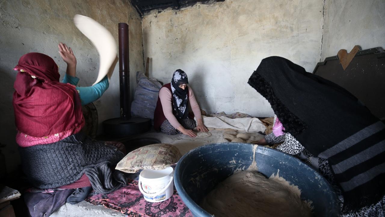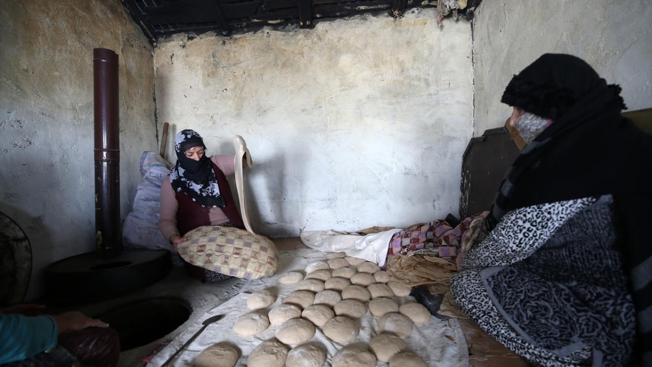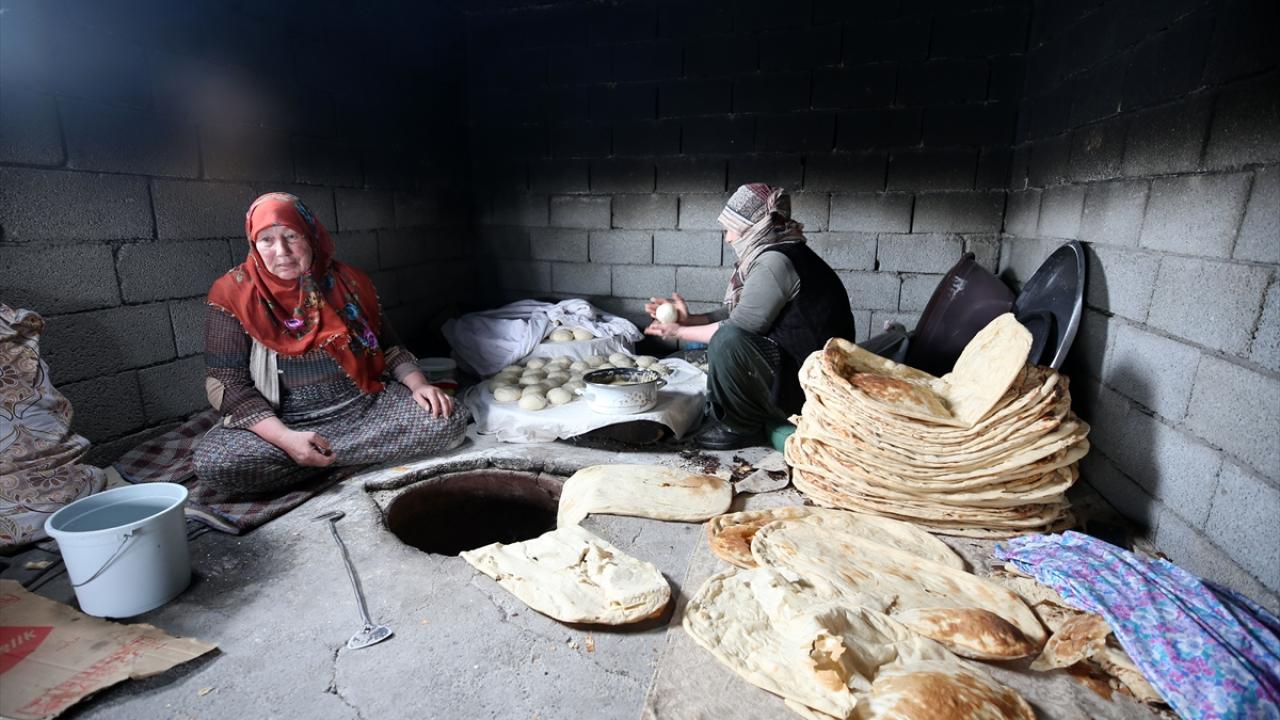 Muş'ta köylerde yaşayan kadınlar, Kahramanmaraş merkezli 10 ili etkileyen 7,7 ve 7,6 büyüklüğündeki depremde mağdur olan vatandaşlar için tandır ekmeği pişirdi.