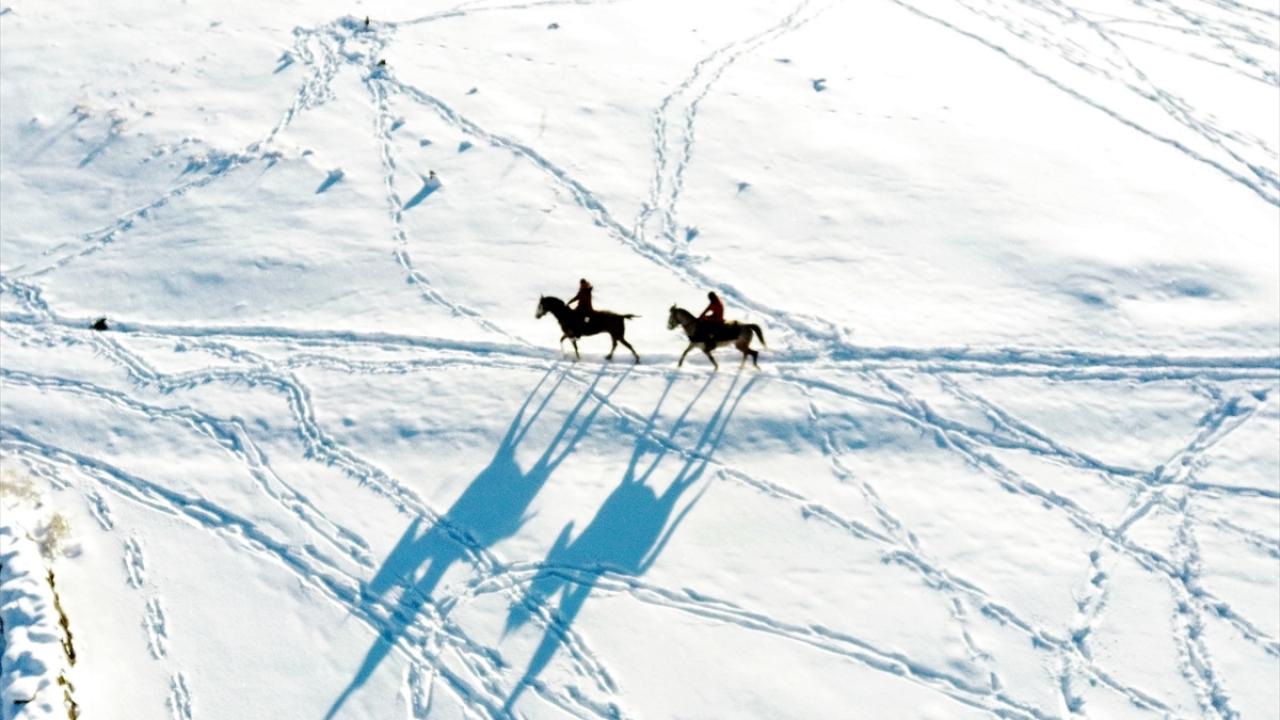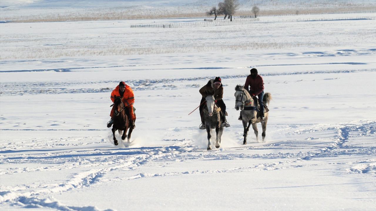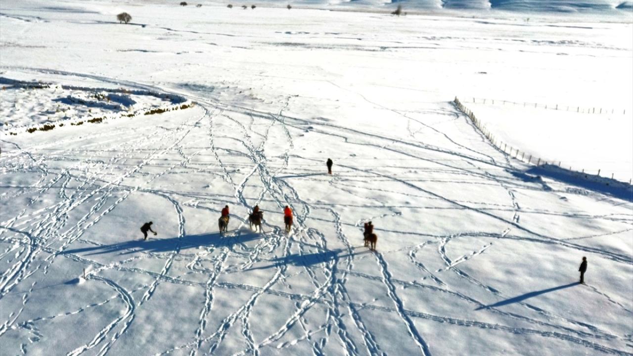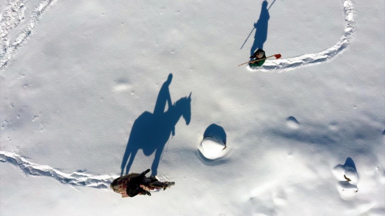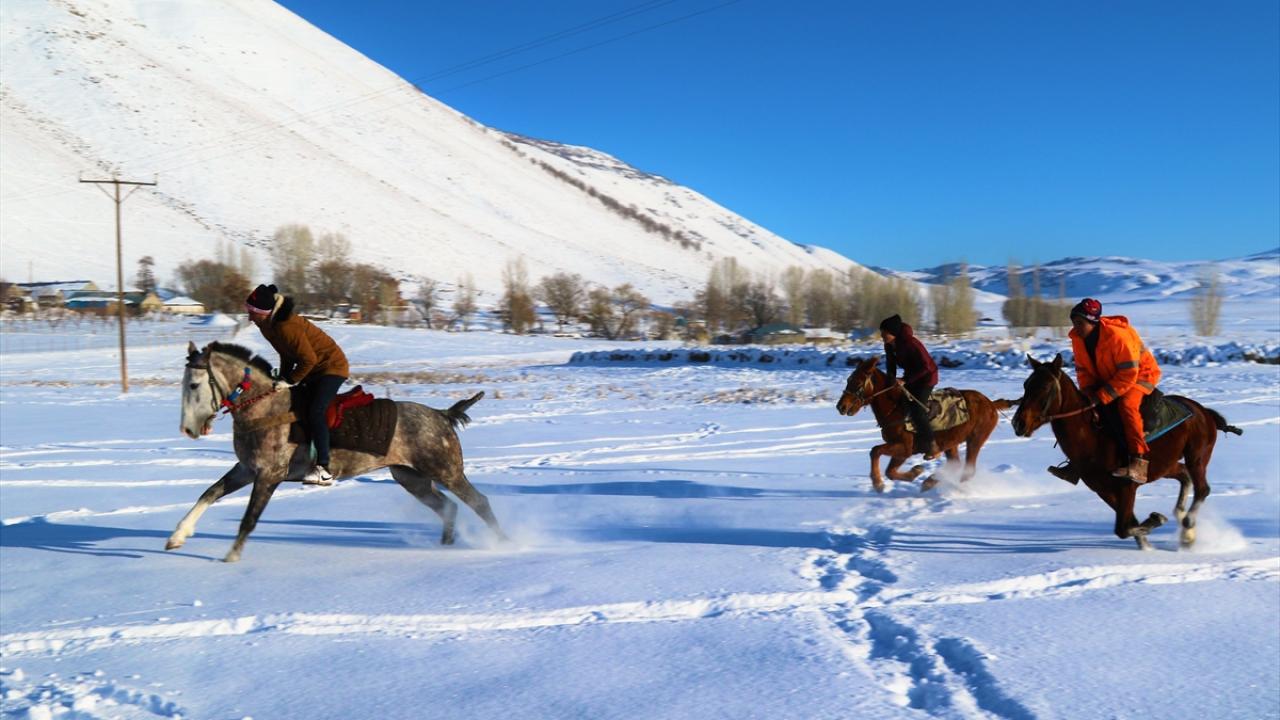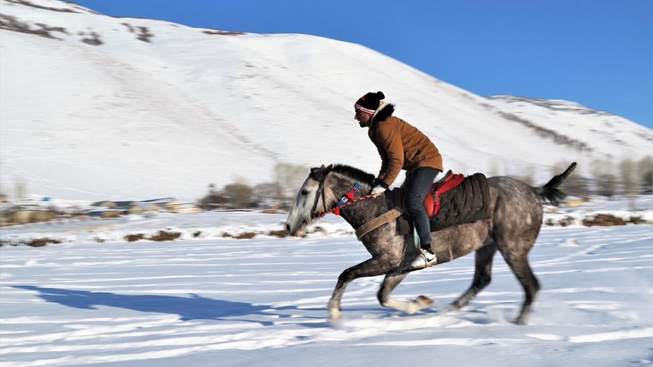 Her evin önünde bir atın olduğu köyün sakinleri, gündelik işlerini yaptıktan sonra boş zamanlarında kar üzerinde atlarını koşturarak zaman geçiriyor.