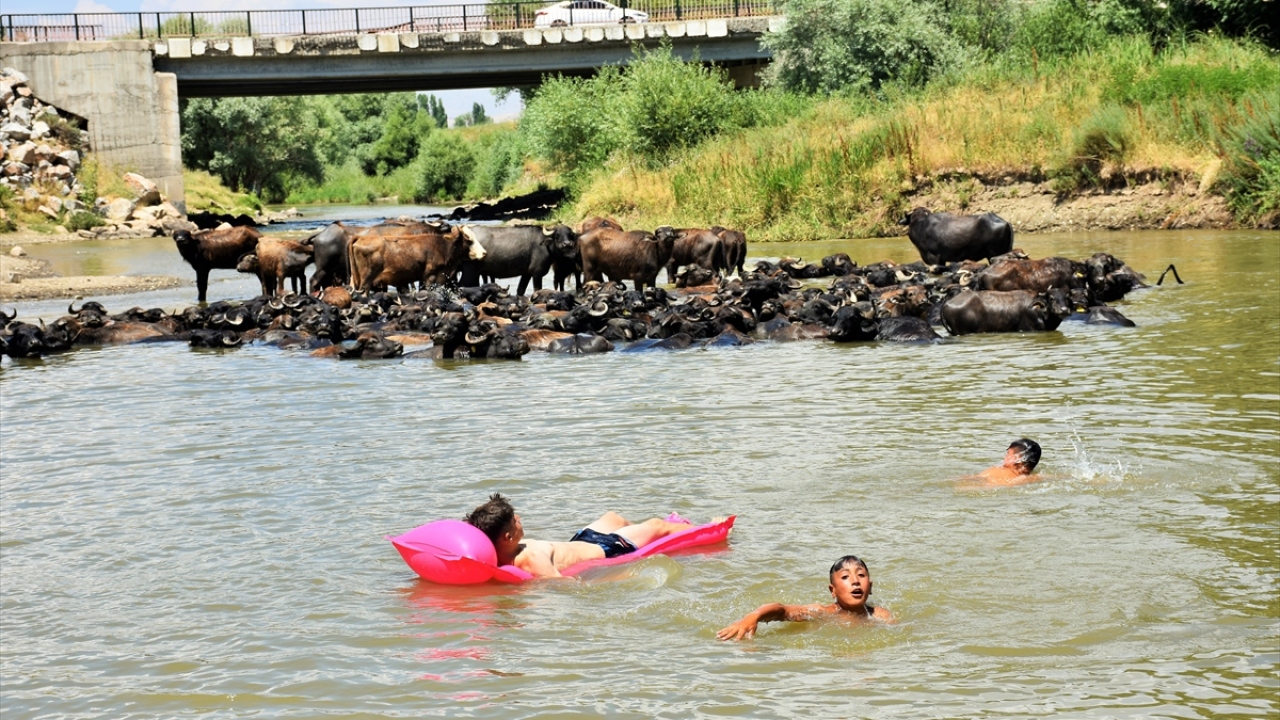 Hayvanları serinletmek için Karasu Nehrine getirdiklerini belirten Çağla, "Biz de mandalarla nehre girip serinliyoruz. Serinlemek için başka bir seçeneğimiz yok. Hayatımda hiç deniz görmedim. Burada eğlenceli zaman geçiriyoruz." dedi.