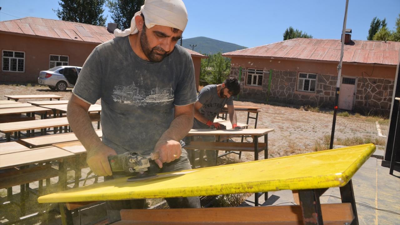 Zımpara makinesiyle yıpranmış sıra ve masaları temizleyip boyayan öğretmenler, sınıfları da yeni eğitim ve öğretim yılına hazır hale getirdi.