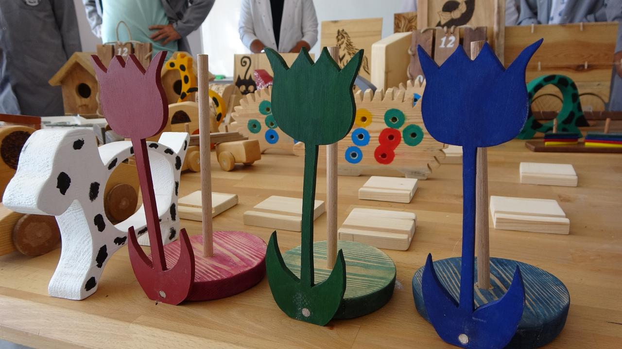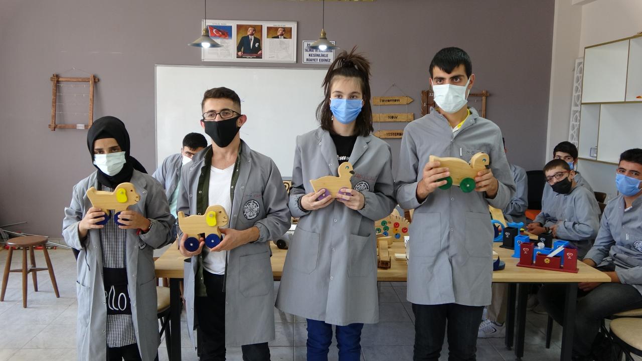 Kursta eğitim gören öğrencilerden Yusuf Sami Bulu ise öğretmenlerini çok sevdiğini belirterek, “Burada ahşaptan ev, araba, saat gibi ürünler yapıyoruz. İleride mezun olduğumuz zaman iş bulma ve işyeri açma imkanımız olabilir. Burada arkadaşlarımızla güzel zaman geçiriyoruz. Yaptığımız ürünleri satıyoruz ve çok mutlu oluyoruz” dedi.