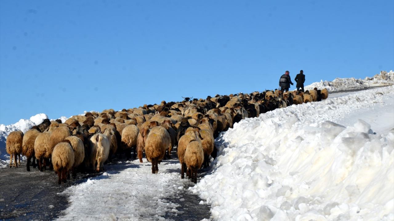 Arıköy Muhtarı Şahin Salkım, gazetecilere, yaklaşık 8 saat süren zorlu yolculuğun ardından besicilerin yaklaşık 2 bin küçükbaş hayvanı güvenli şekilde karla kaplı arazilerden geçirerek kent merkezine getirdiğini söyledi.