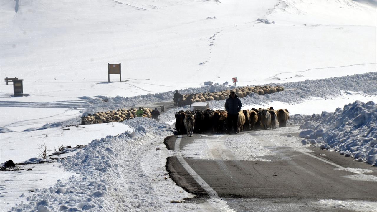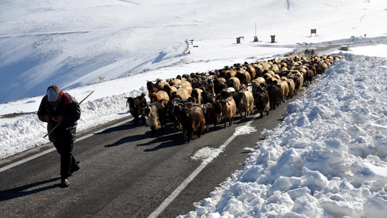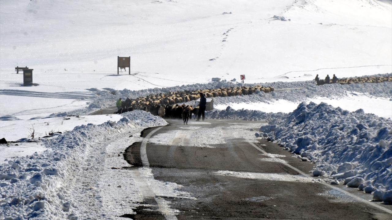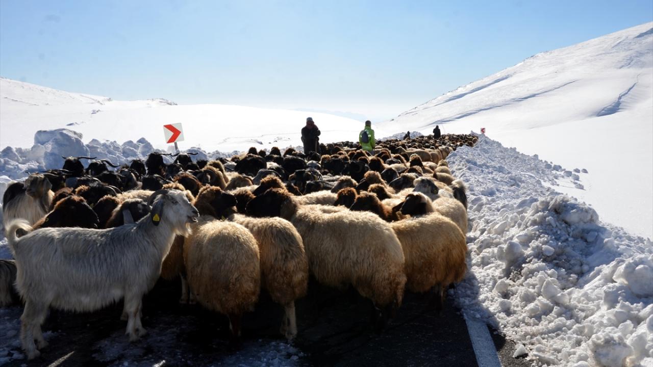 Kent merkezinden yaklaşık 35 kilometre uzaklıktaki Arıköy`deki yayladan sürüleriyle kent merkezine dönen besiciler, 2 bin 500 rakımlı Çavuştepe mevkisinde etkili olan tipi ve yolun kapanması nedeniyle mahsur kaldı.