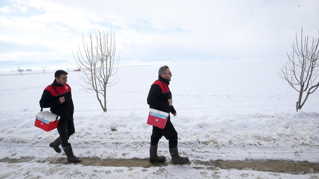 Çetin kış koşullarında en ücra köylere kadar giden veteriner hekimler, bu yıl yaklaşık 50 bin hayvanı aşılayarak buzağı kayıplarını önlemeyi hedefliyor.