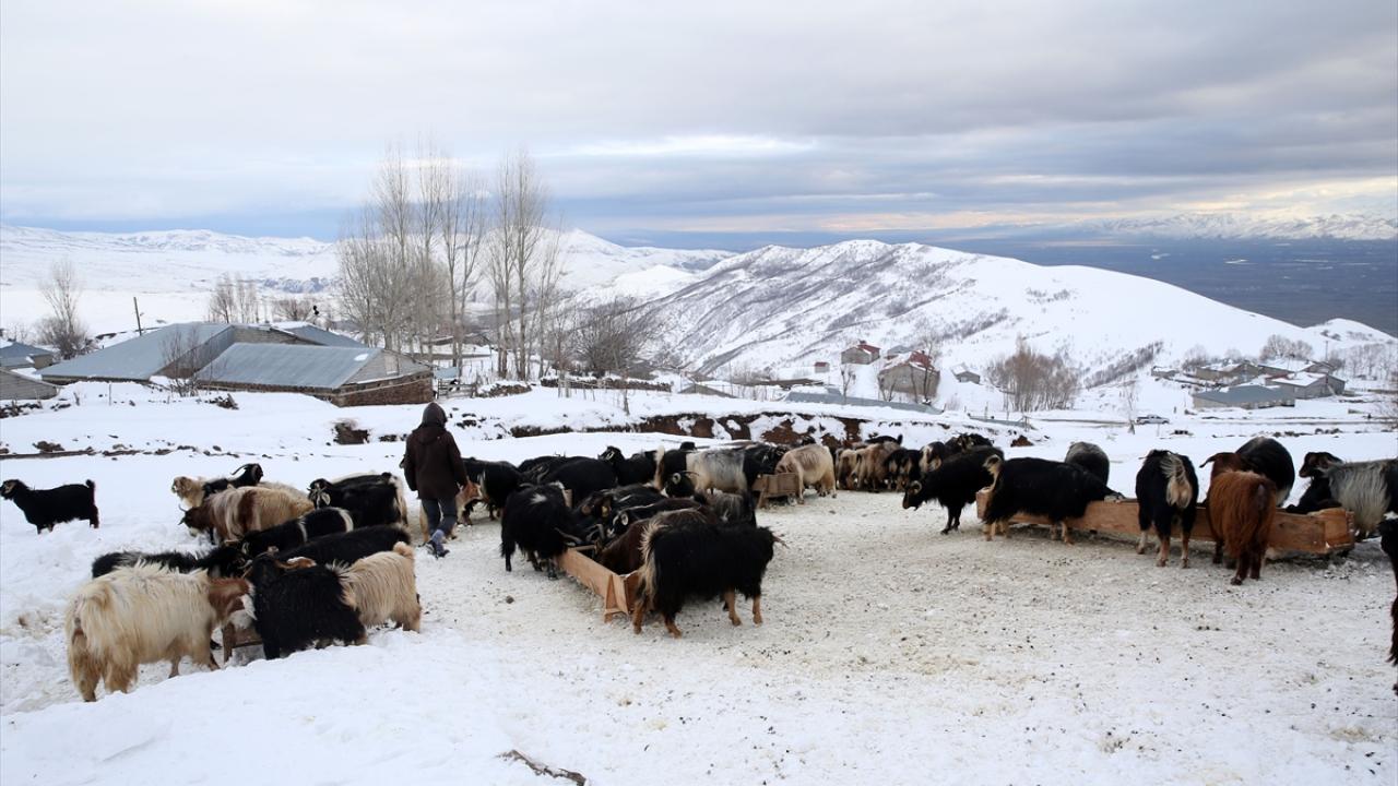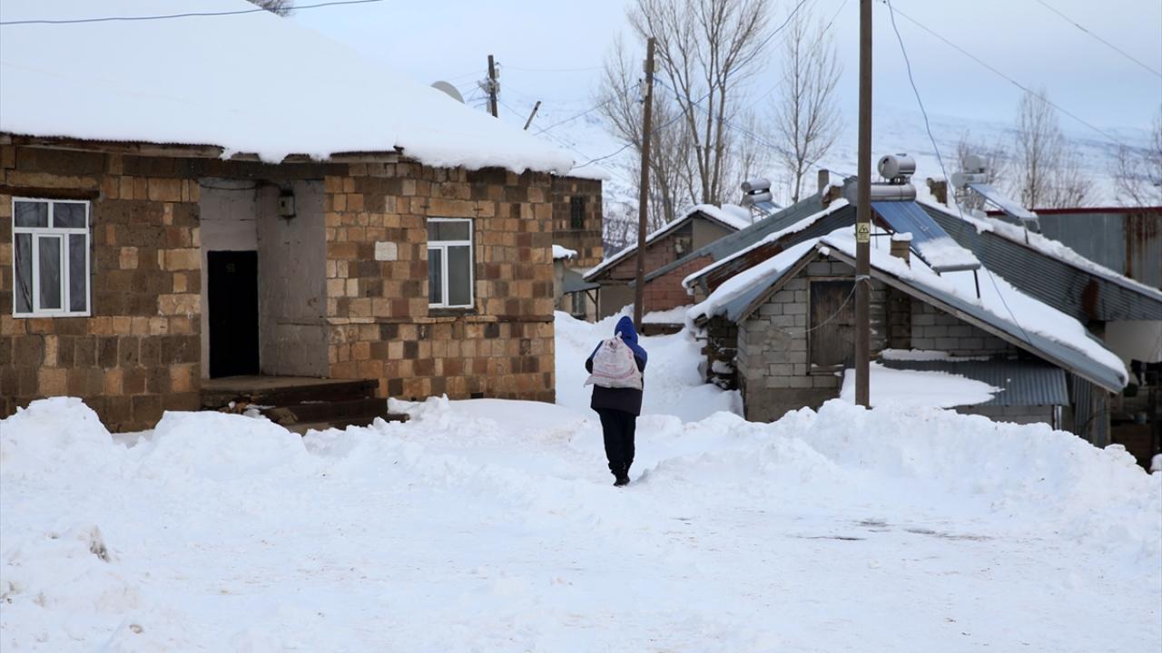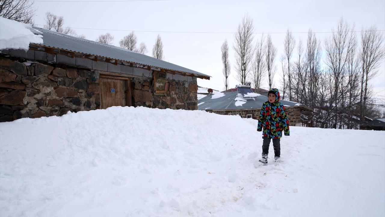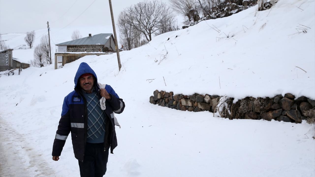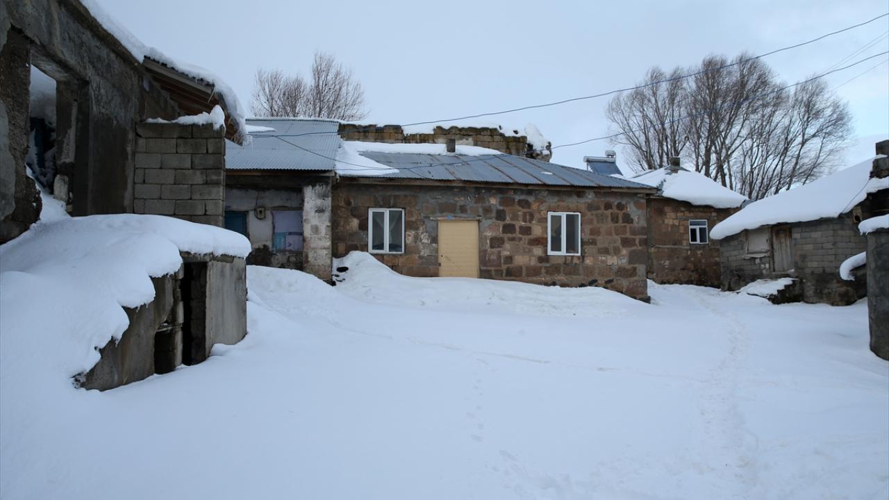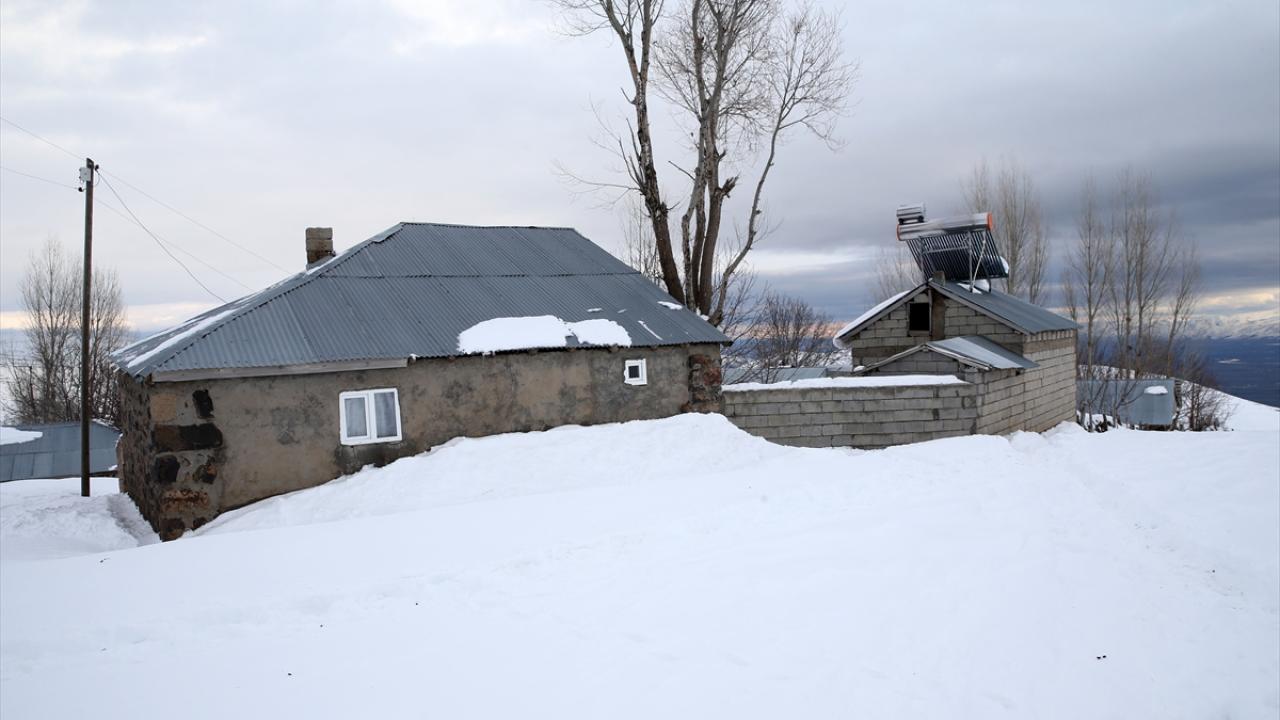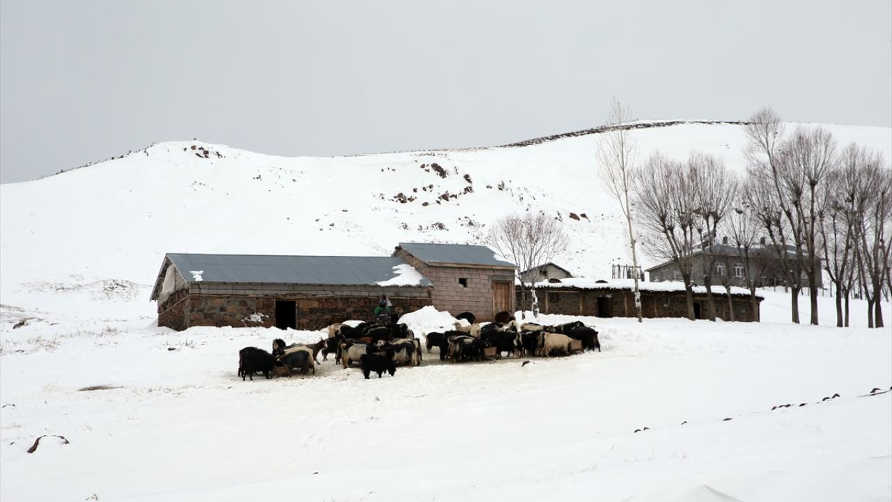 Yüksek rakımlı dağların yamaçlarına kurulan köylerde de etkili olan kar yağışının ardından vatandaşlar, ev ve ahırların önünde biriken karları temizliyor.