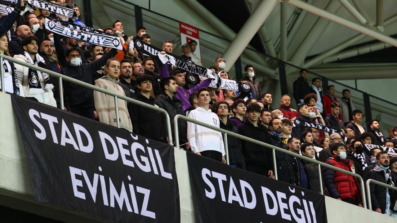 7,5 yıl sonra kapılarını açan Alsancak Mustafa Denizli Stadı’nda Altay taraftarları takımını yalnız bırakmadı. Yağışlı hava nedeniyle Altaylı taraftalar planladıkları kareografiyi sunamadı.