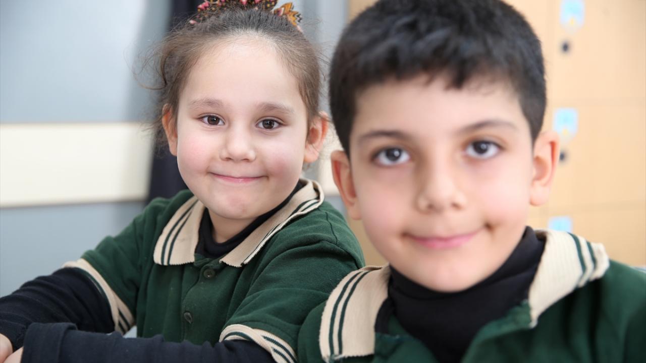 Fiziksel benzerlikleri nedeniyle arkadaşları ve öğretmenlerinin ayırt etmekte zorlandığı ikizler, bu özellikleriyle okula renk katıyor.