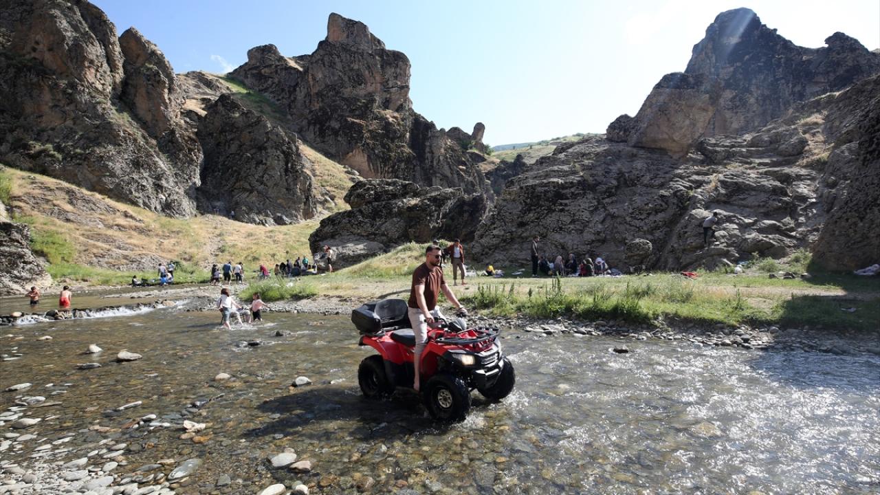 Yazın bunaltıcı sıcağından uzaklaşma imkanı bulan, eşsiz manzaranın tadını çıkaran ziyaretçilerden bazıları ise kanyonda ATV kullanarak keyifli vakit geçiriyor.