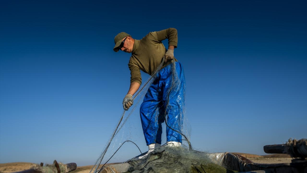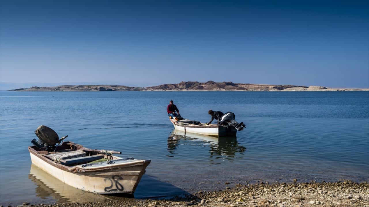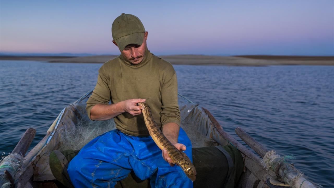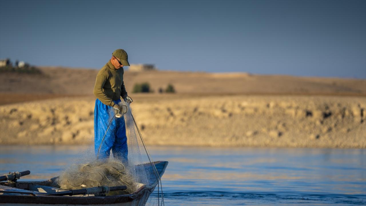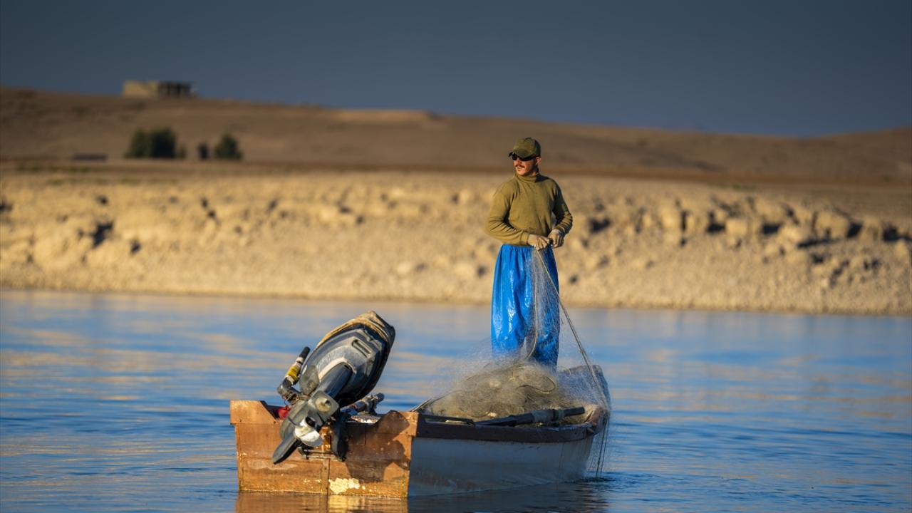 Irak’ın Ninova ilinde yer lan Musul Baraj Gölü’nde yaşayan halk, balık avlayarak geçimlerini sağlıyor.