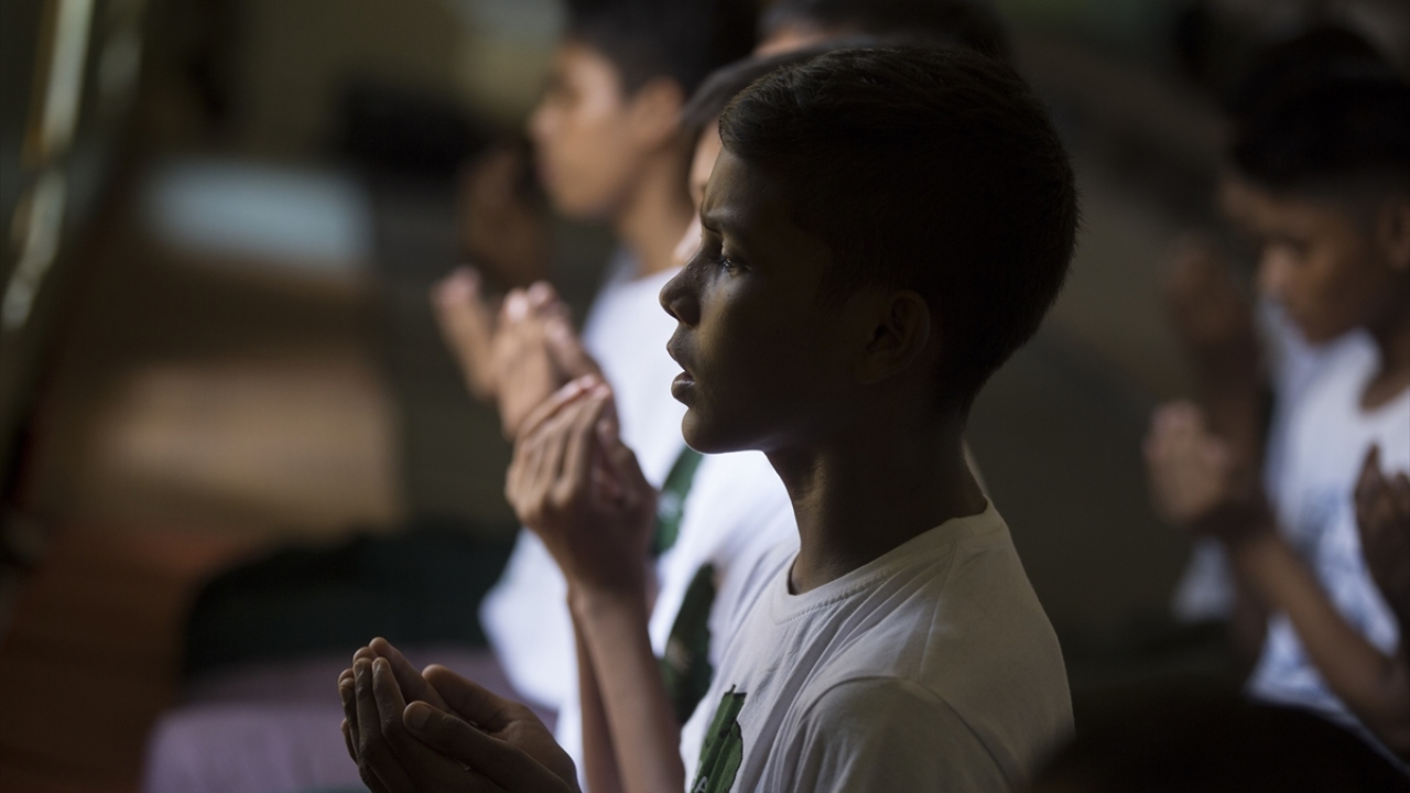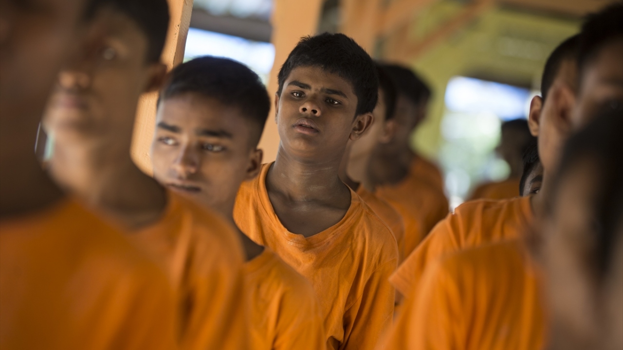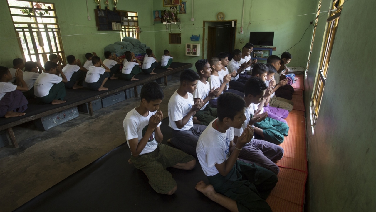 Bir çoğu, Yangon`a ya da ülke dışına izinsiz seyahate teşebbüs ettikleri için hüküm giyerek bu merkeze gönderilen Arakanlı gençler, kaldıkları yurt odalarından ayrılırken ve geri döndüklerinde dua ediyorlar.