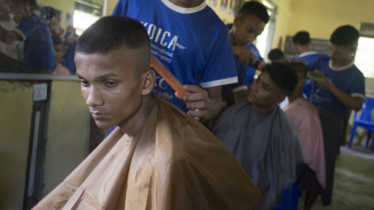 Bir çoğu, Yangon`a ya da ülke dışına izinsiz seyahate teşebbüs ettikleri için hüküm giyerek bu merkeze gönderilen Arakanlı gençler, saç kesimi gibi ihtiyaçlarını burada karşılıyor.