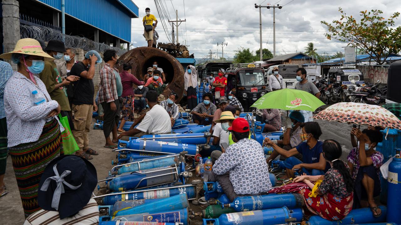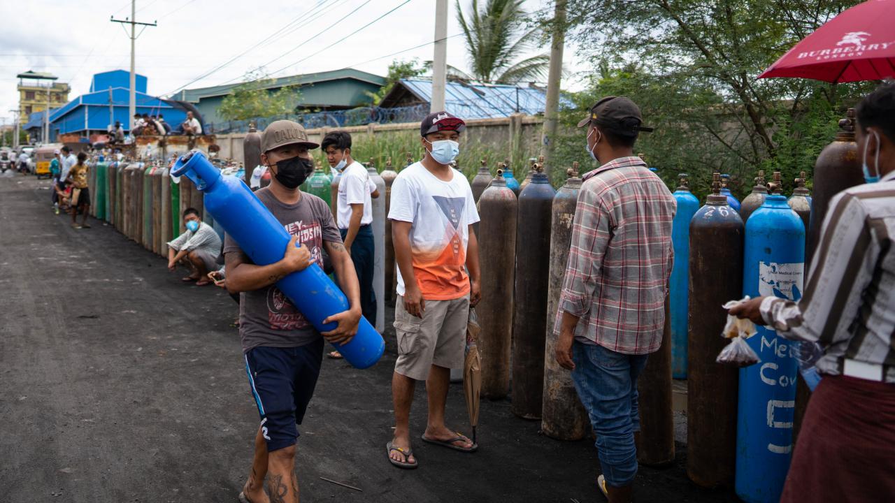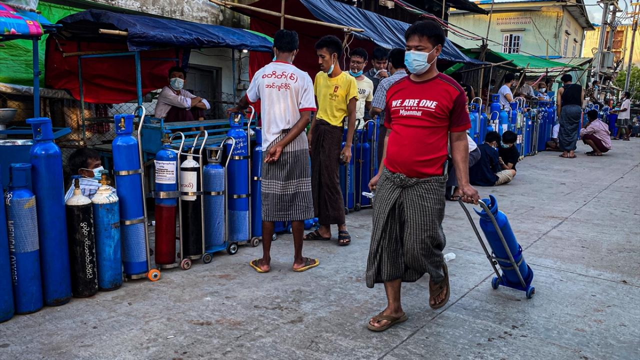 Başta Kalay, Mandalay ve Yangon gibi kentler olmak üzere ülkenin birçok kentinde tıbbi oksijen sıkıntısı yaşanıyor.