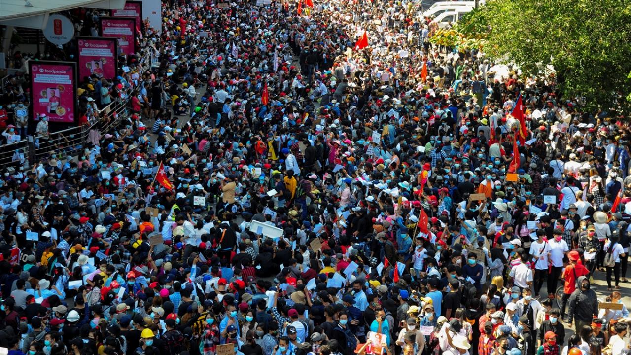 Myanmar askeri yönetimi, darbe karşıtı protestoların ülkeye yayılması üzerine dün, Yangon ve Mandalay`ın 7 ilçesinde sıkıyönetim ilan etmişti.