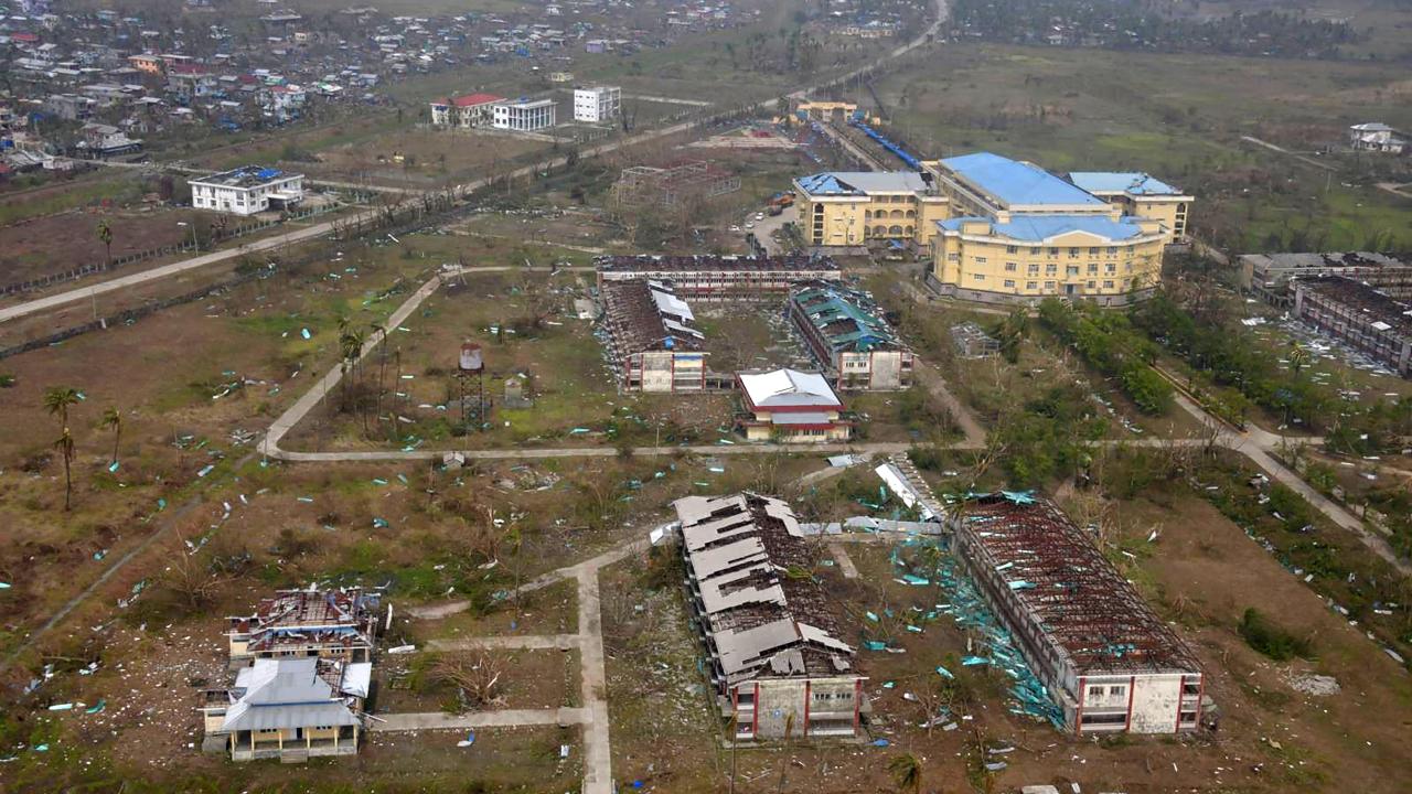Arakan eyaletinin başkenti Sittwe`de iletişim hatlarının onarılması için çalışmalar devam ederken, cadde ve sokaklar temizleniyor.