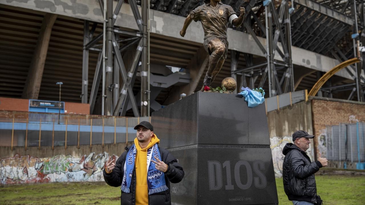Arjantinli futbolcu Diego Armando Maradona'nın ölümünün 1. yıl dönümü Napoli'de unutulmadı. Düzenlenen törende futbolcunun ölüm yıl dönümüne özel yapılan Maradona heykelinin açılışı yapıldı.