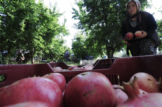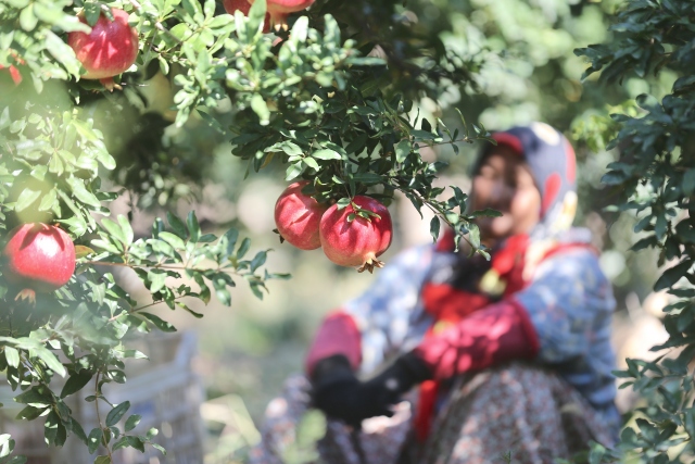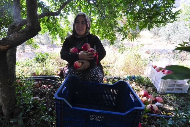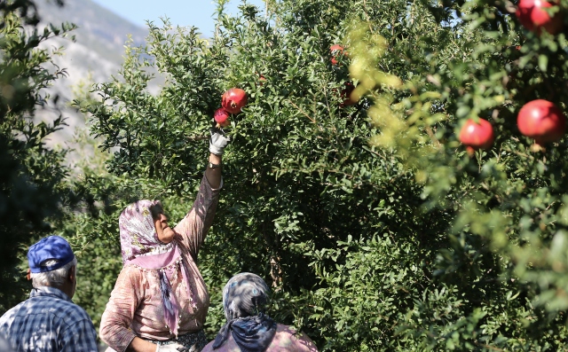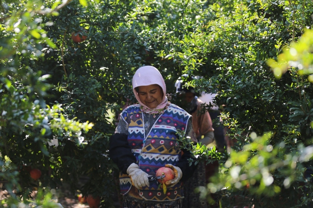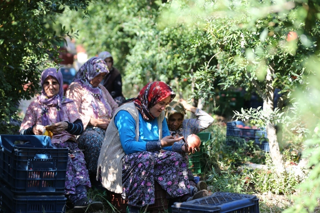 Türkiye'de nar üretiminin önemli bir kısmının gerçekleştirildiği Antalya'da üreticiler, daha dikkatli ve narin davranarak ağaç filizlerine zarar vermedikleri için hasatta kadın işçileri tercih ediyor.