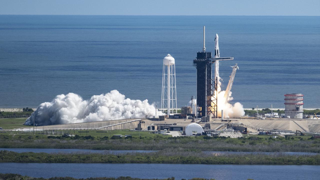 Mürettebat, Uluslararası Uzay İstasyonuna düzenlenen altı aylık bir sefer kapsamında Crew Dragon uzay aracından gönderildi.