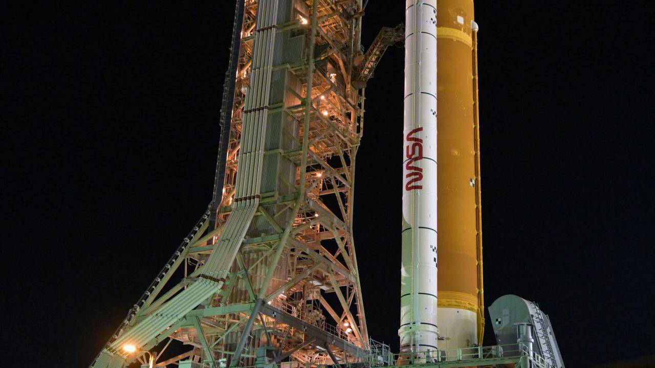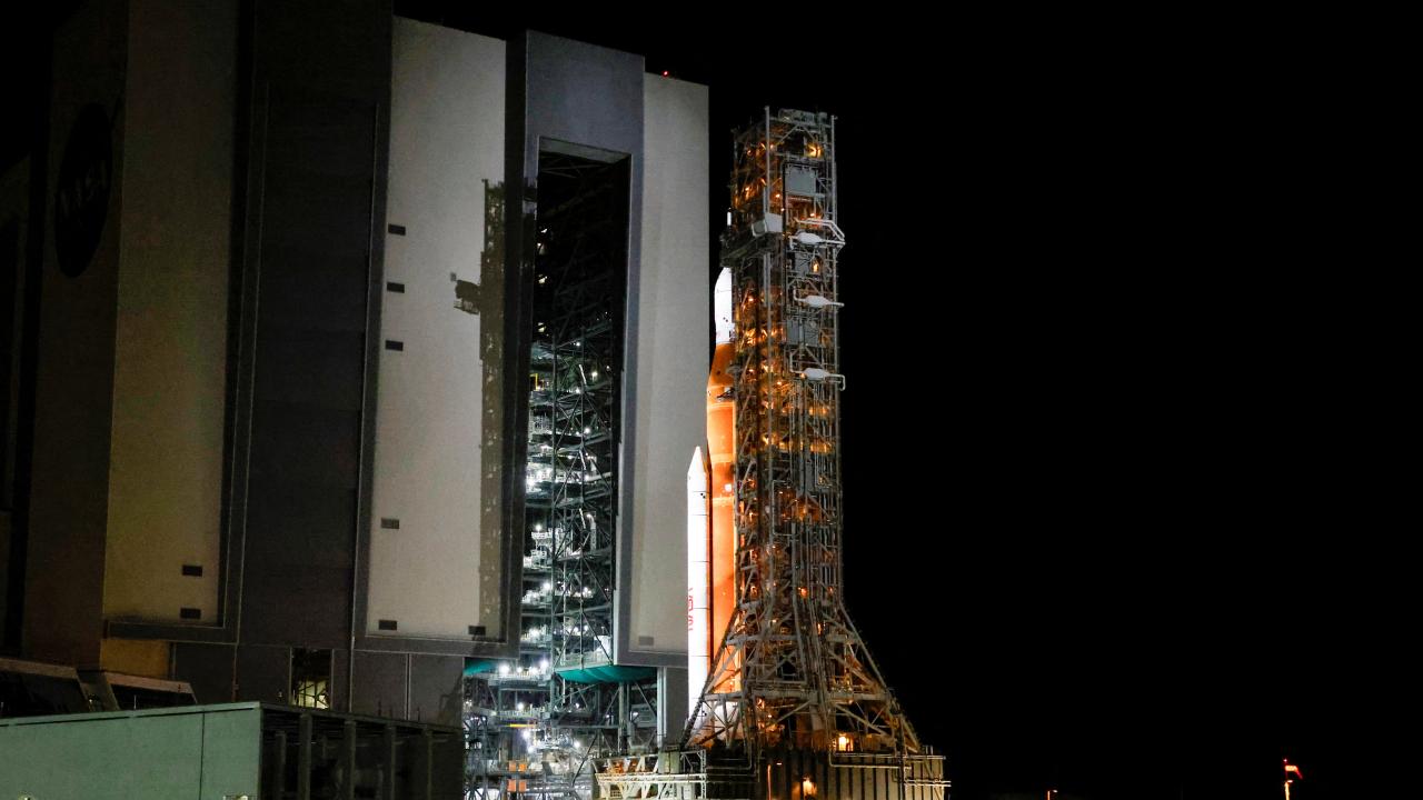 NASA'nın üzerinde mürettebatsız bir astronot kapsülü bulunan devasa Uzay Fırlatma Sistemi ay roketi, bu ayki ilk test uçuşu öncesinde fırlatma rampasında görüntülendi.