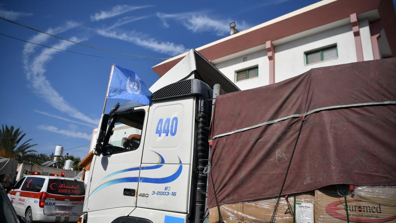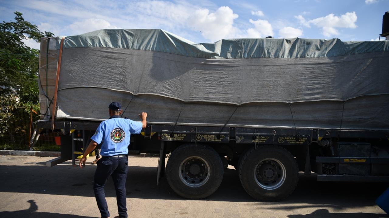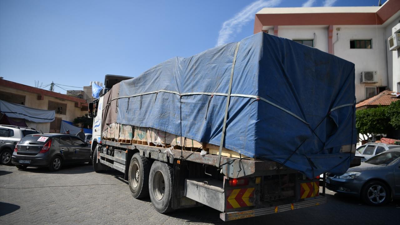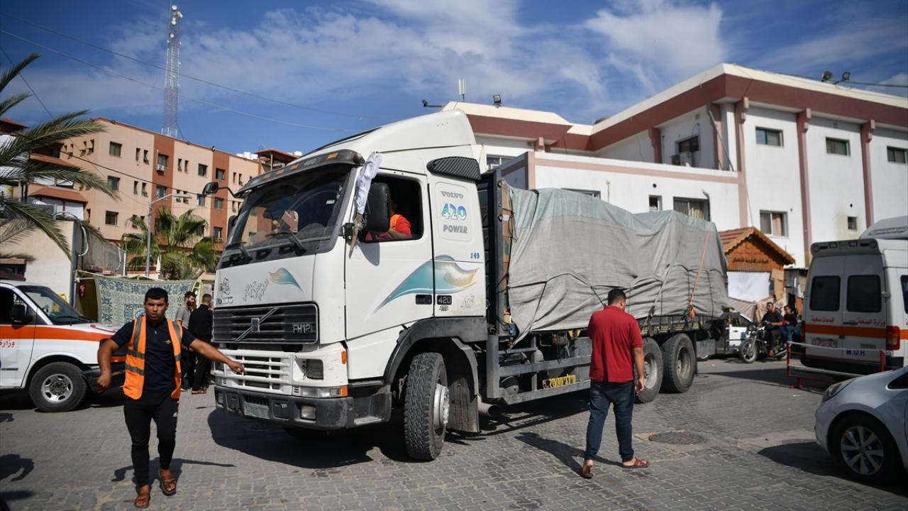 Mısır`dan gelen kefenlerle dolu bir yardım kamyonu, Birleşmiş Milletler himayesinde Gazze Şeridi`nin Han Yunus kentindeki Nasır Hastanesi`ne ulaştı.