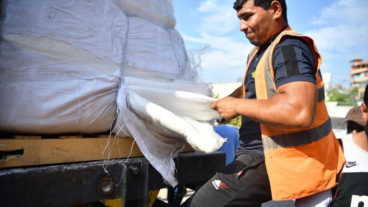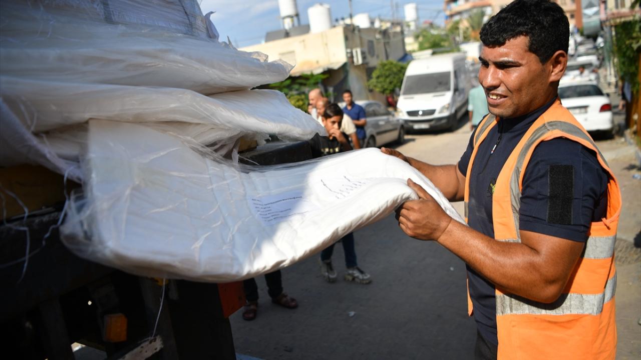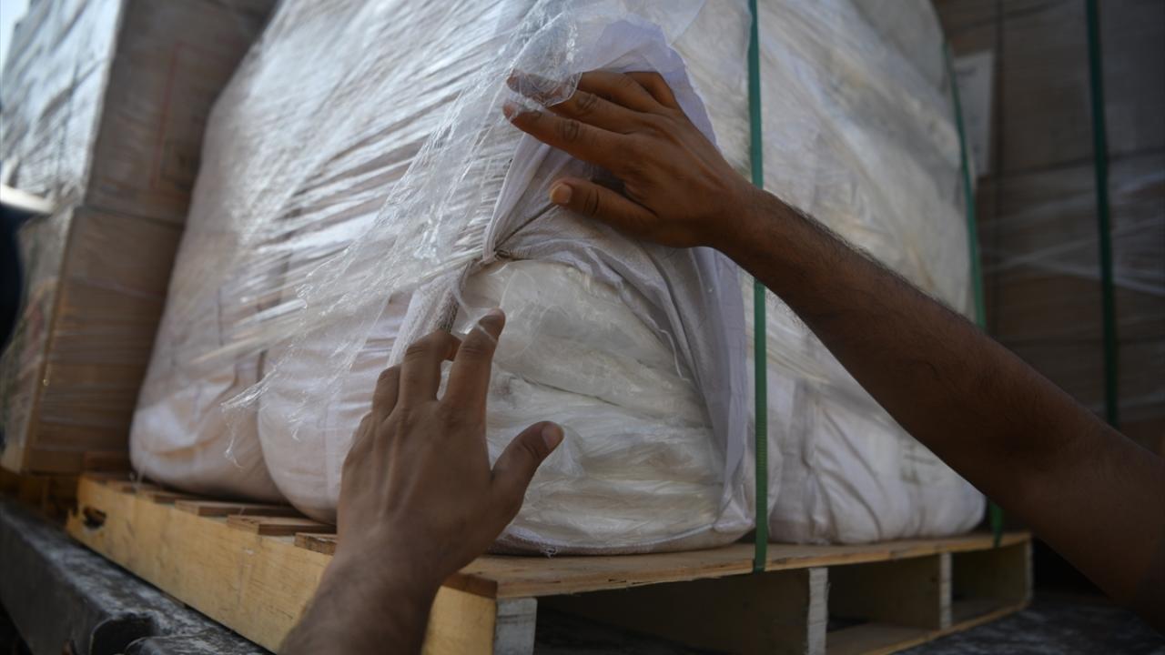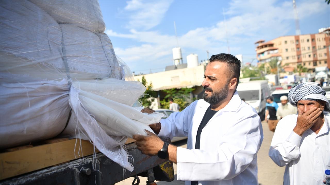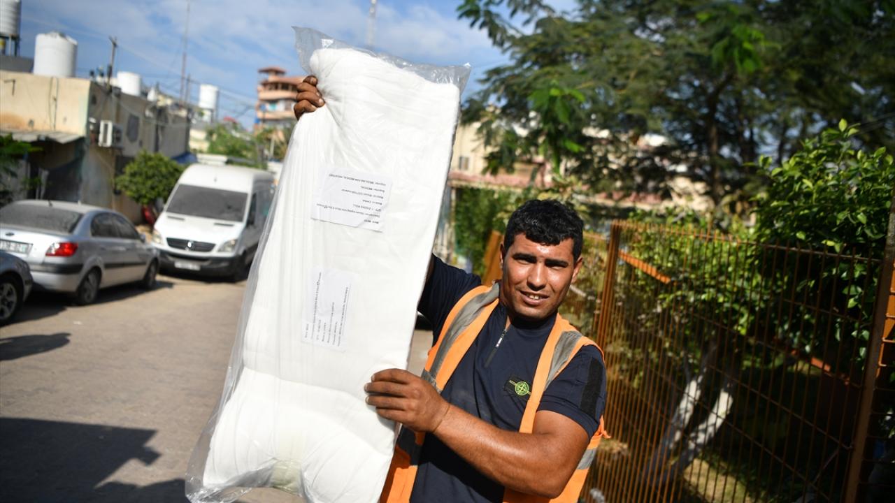 Mısır`dan gelen kefenlerle dolu bir yardım kamyonu, Birleşmiş Milletler himayesinde Gazze Şeridi`nin Han Yunus kentindeki Nasır Hastanesi`ne ulaştı.