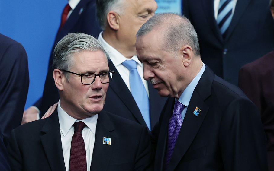 Resmi karşılama töreninden sonra gerçekleştirilen aile fotoğrafı çekiminde, Cumhurbaşkanı Erdoğan’ın sağında İngiltere Başbakanı Keir Starmer, solunda ise İsveç Başbakanı Ulf Kristersson yer aldı.