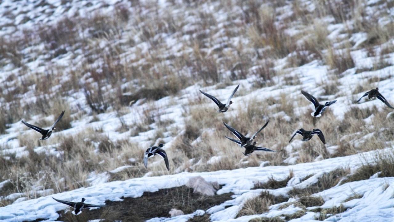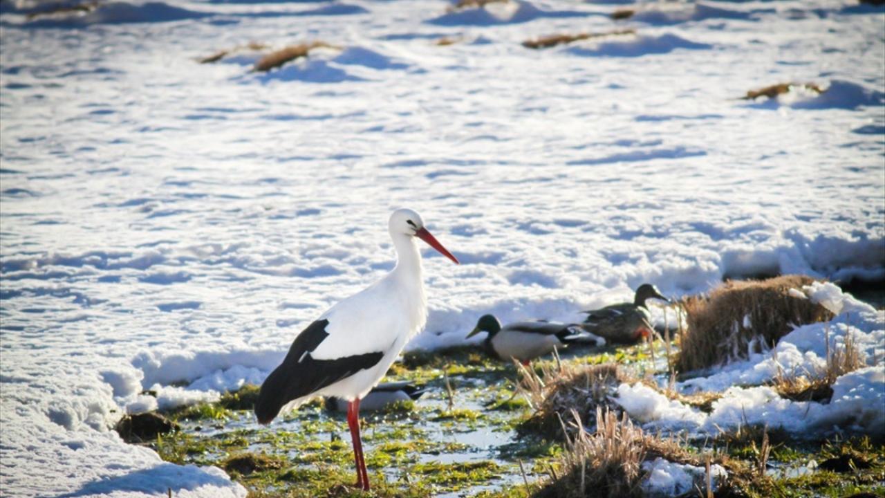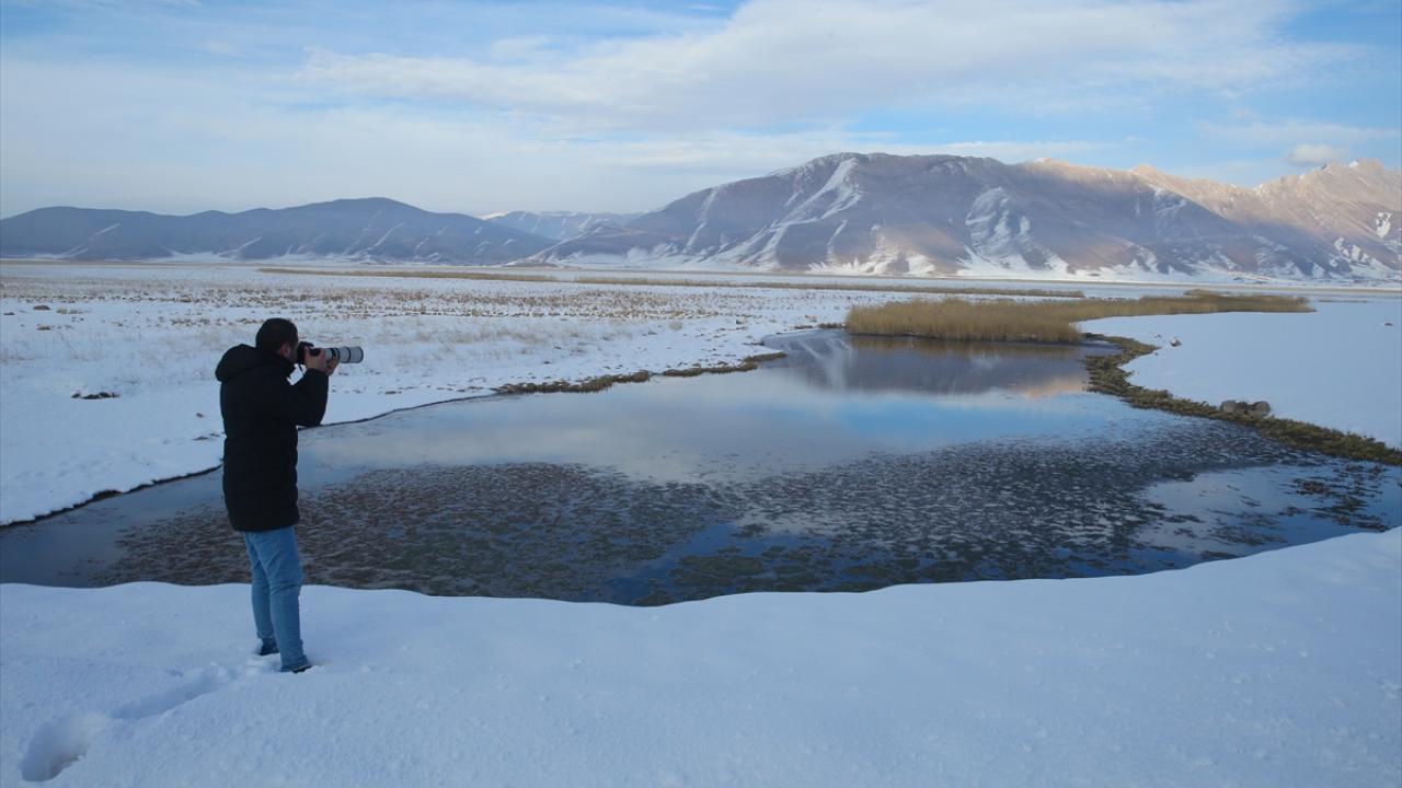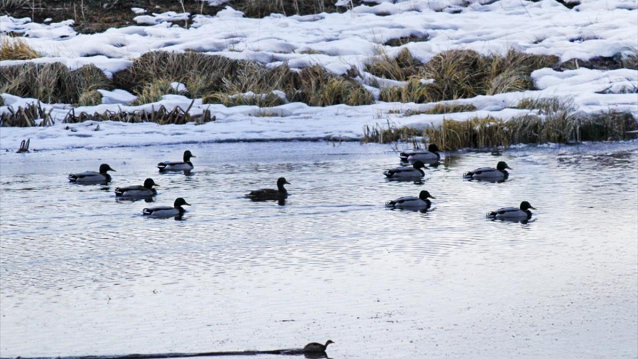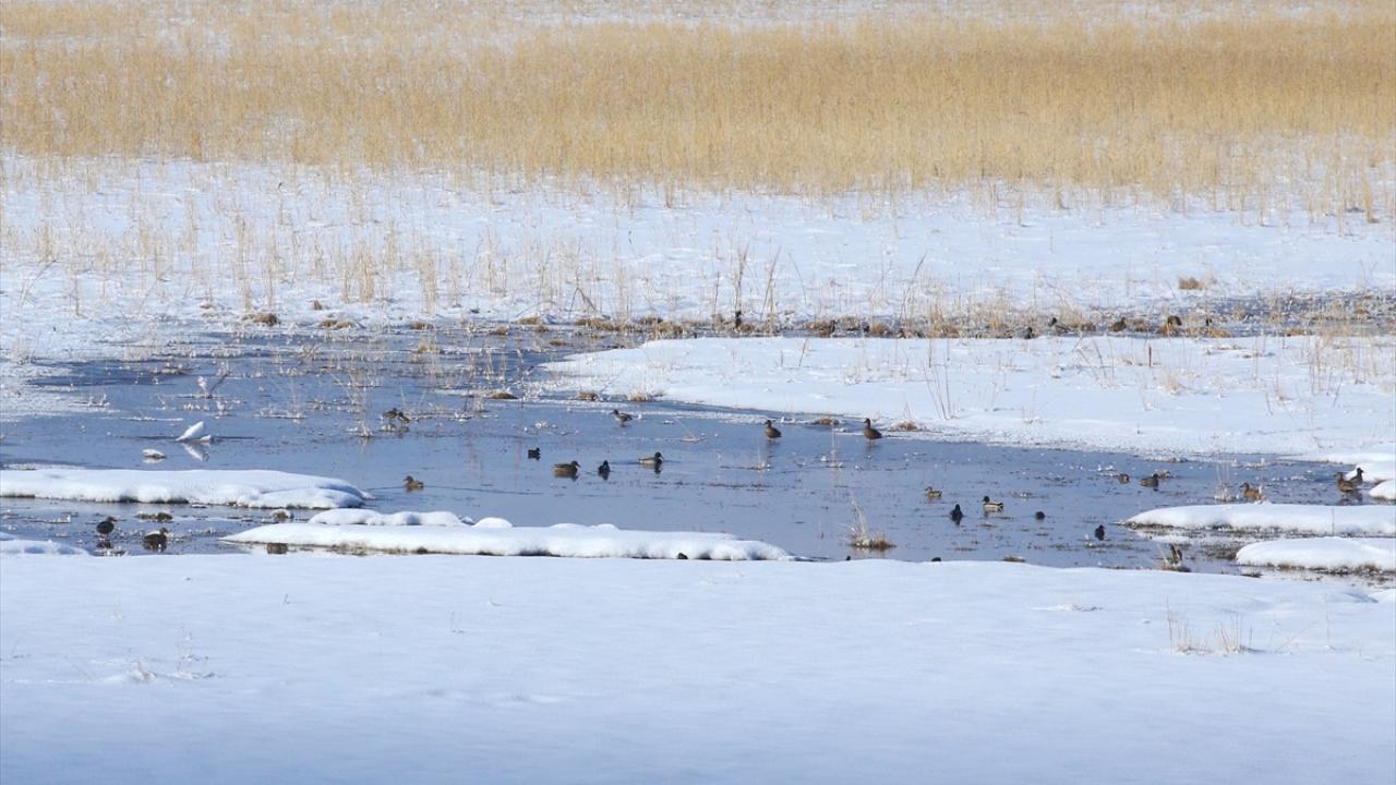 Karla kaplı alanın farklı noktalarında gözlem yapan ekipler, bu yıl kışın sulak alanı mesken edinen 16 kuş türünü tespit etti.