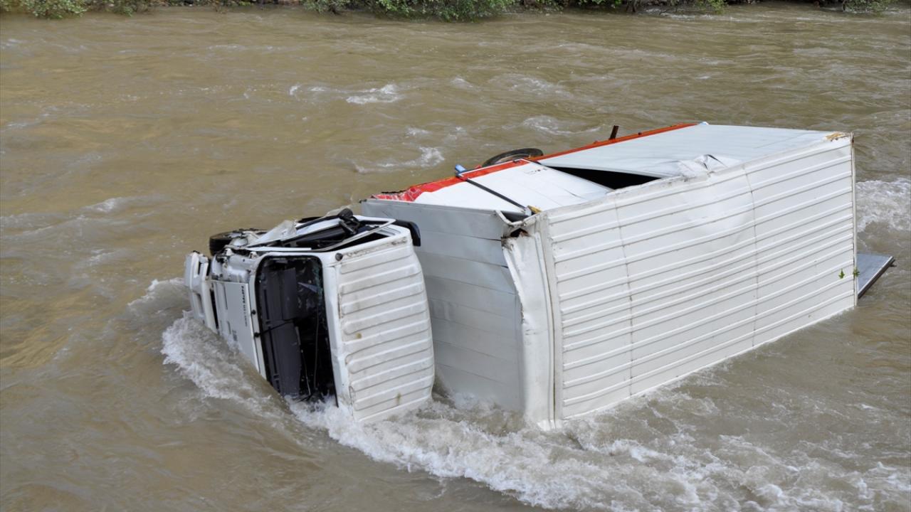 Bölgeye gelen ekipler, sürücünün akıntıya kapılarak kaybolduğunu belirledi.