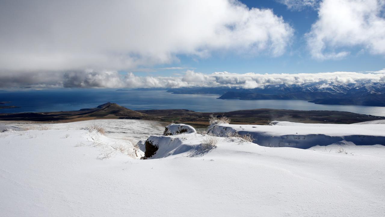 Nemrut Dağı ile yüksek kesimler karla kaplandı