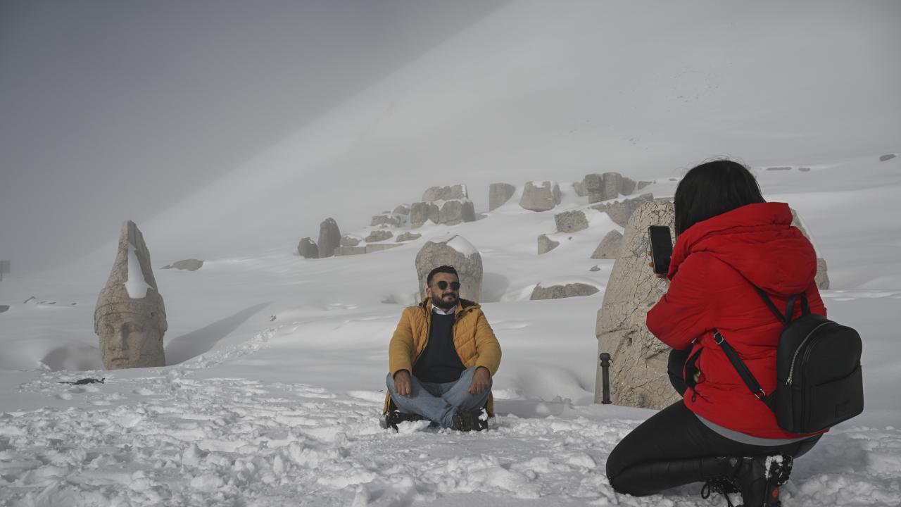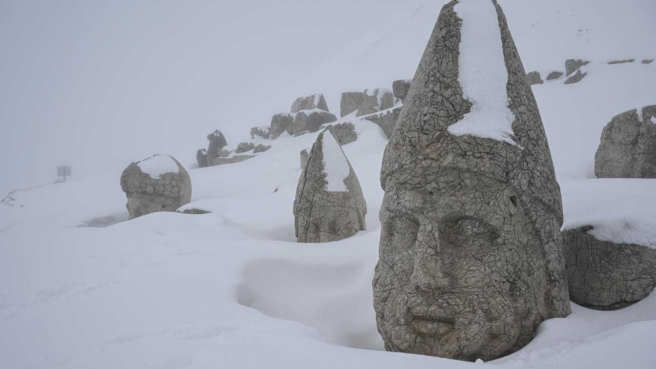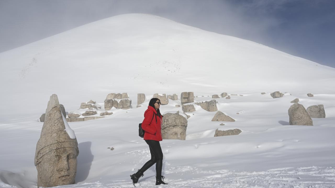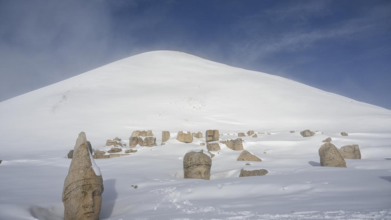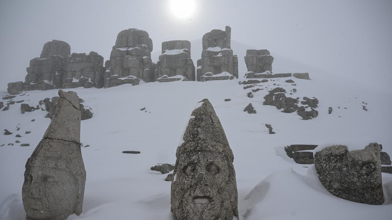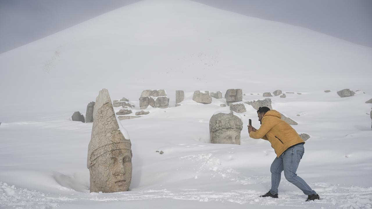 UNESCO Dünya Kültür Miras Listesi'ndeki 2 bin 150 metre rakımlı Nemrut Dağı Ören Yeri, ziyaretçilerini ağırlıyor. Adıyaman'ın Kahta ilçesindeki Nemrut Dağı'nın karla kaplanması güzel görüntüler oluşturdu.