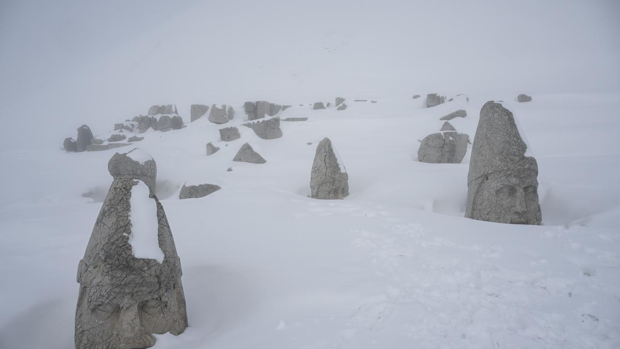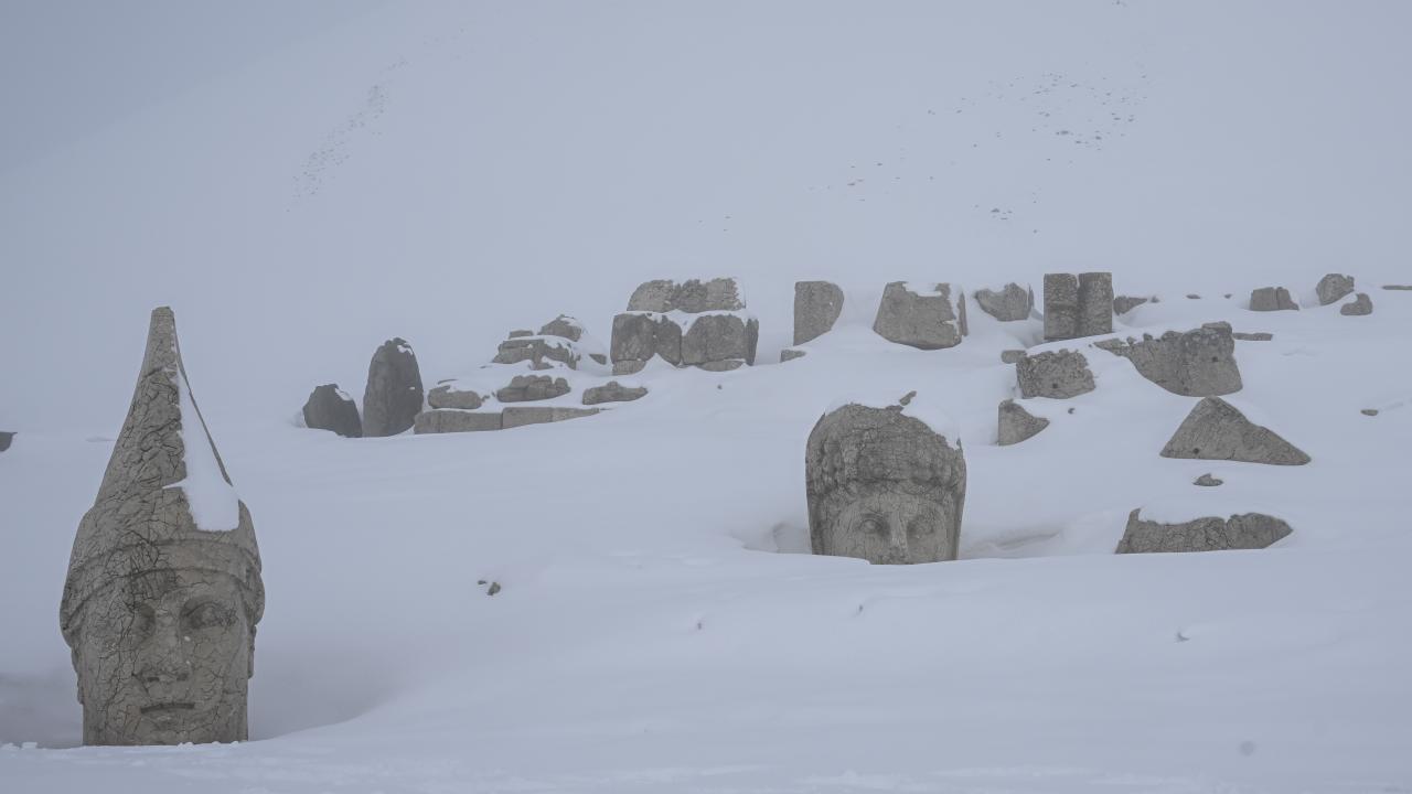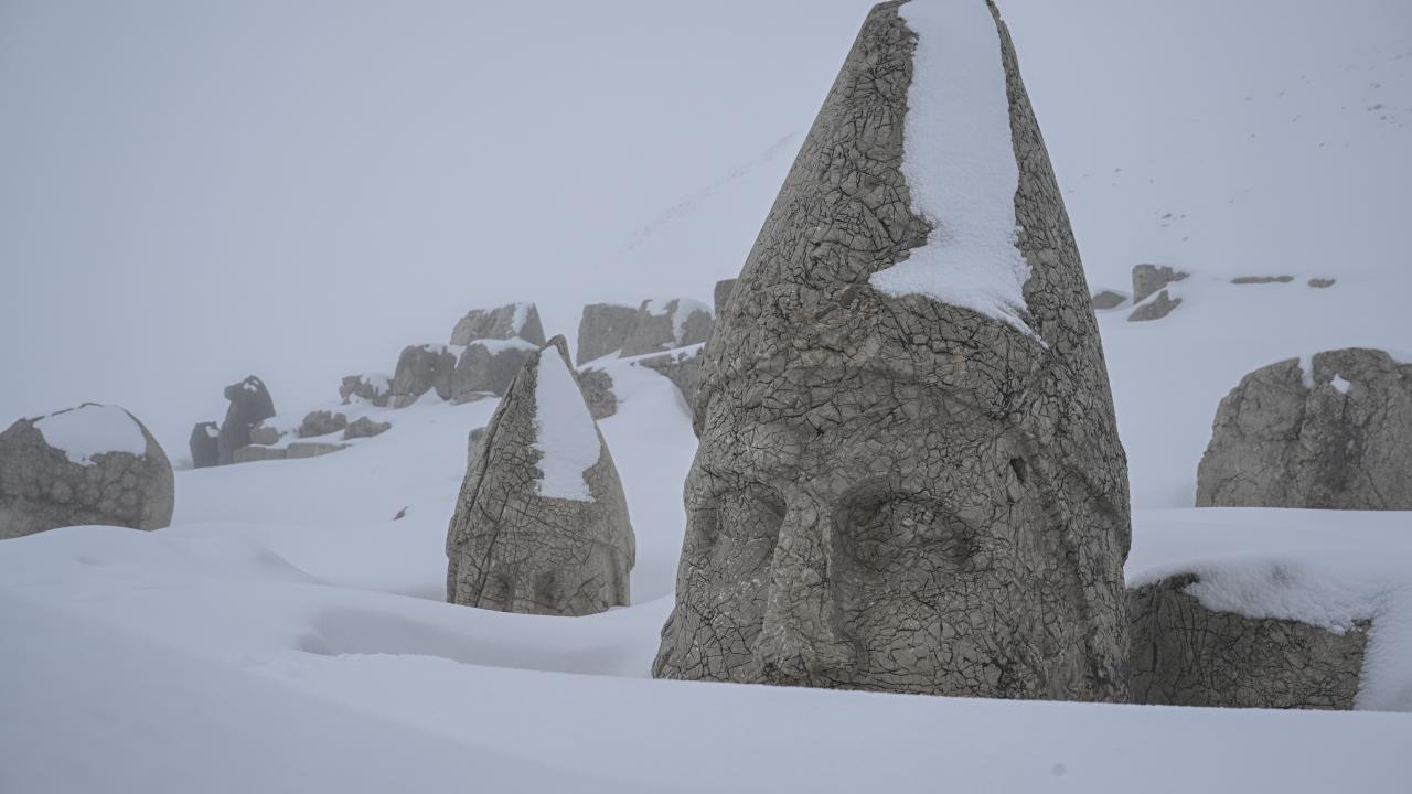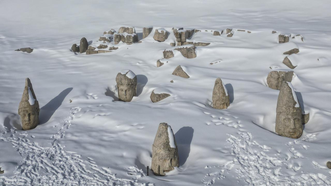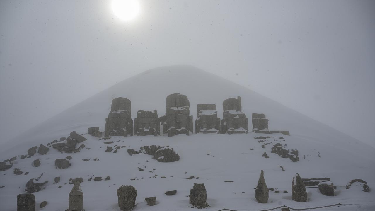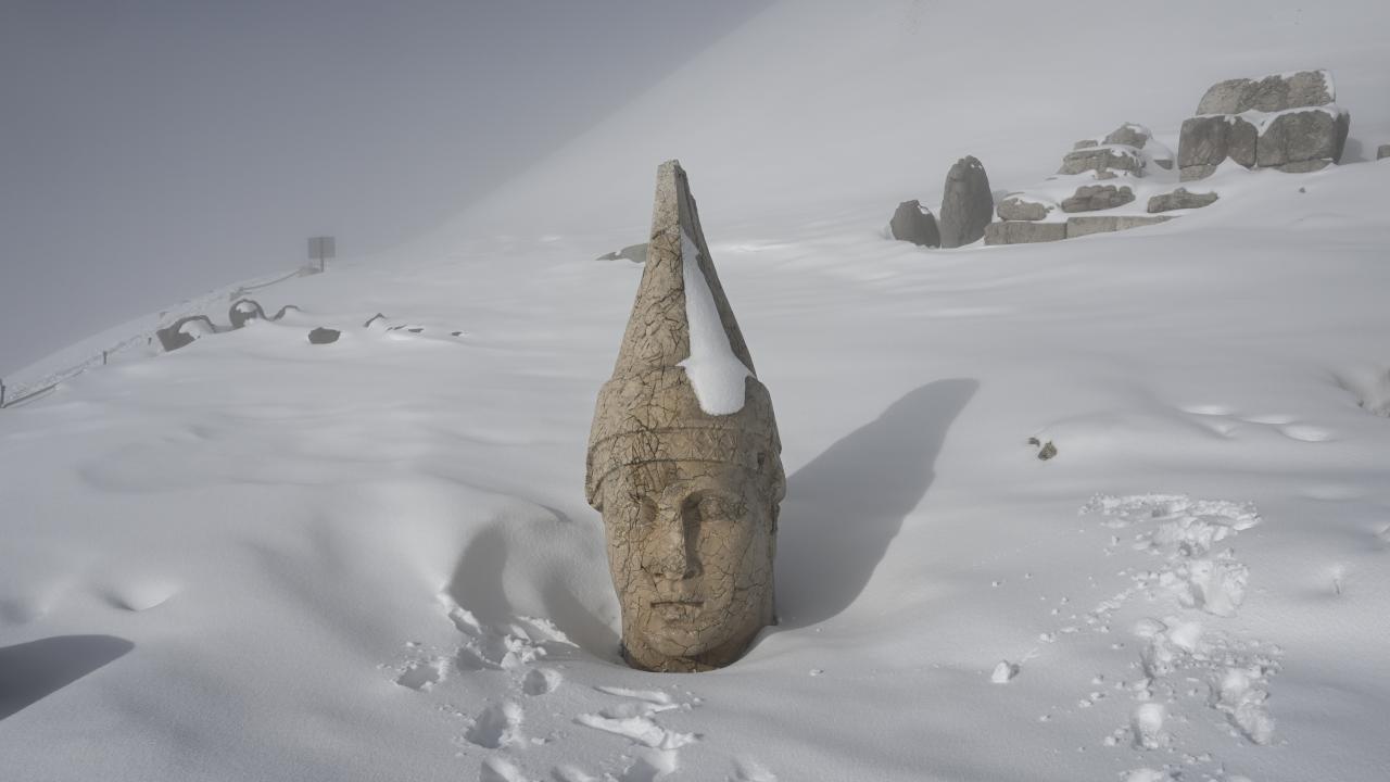 UNESCO Dünya Kültür Miras Listesi'ndeki 2 bin 150 metre rakımlı Nemrut Dağı Ören Yeri, ziyaretçilerini ağırlıyor. Adıyaman'ın Kahta ilçesindeki Nemrut Dağı'nın karla kaplanması güzel görüntüler oluşturdu.