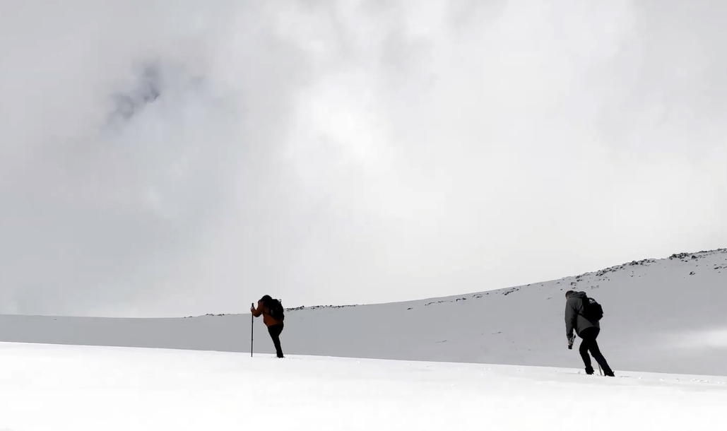 Bitlis Eren Üniversitesi (BEÜ) akademisyenleri ve fotoğrafçılar metrelerce kara rağmen yaklaşık 5 saatlik yürüyüşün ardından Nemrut Dağı zirvesine çıktı.