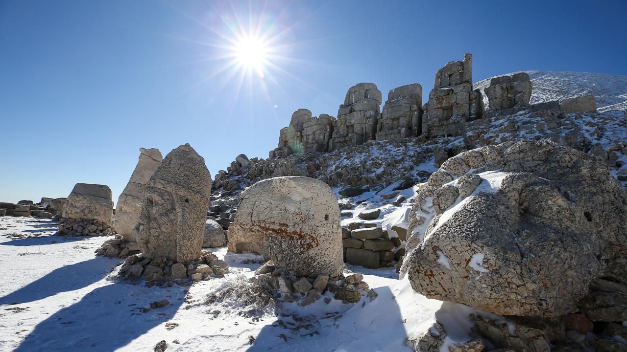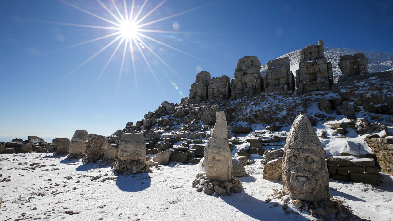 Kommagene Krallığı`na ait 50 metre yüksekliğinde, 150 metre çapındaki tümülüs ve dev heykellerin bulunduğu 2 bin 150 metre yükseklikteki Nemrut Dağı, yerli ve yabancıların beğenisini topluyor.