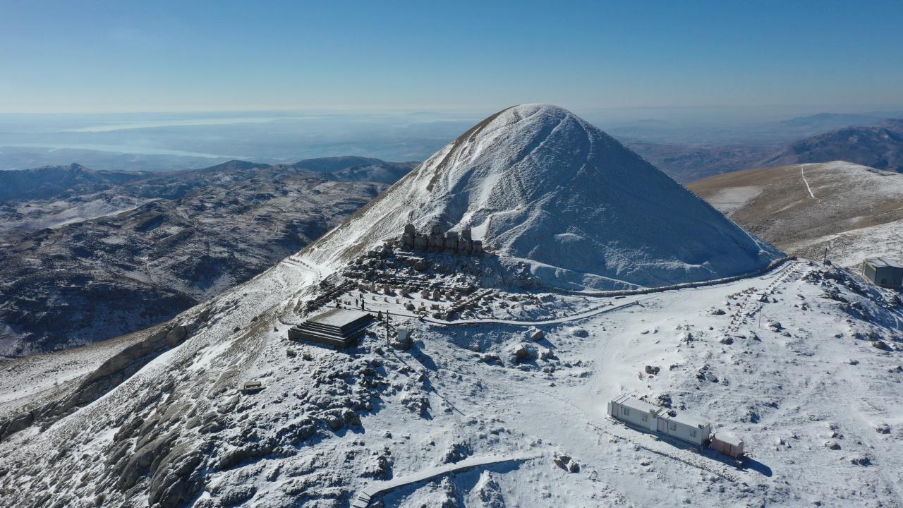 "Dünyanın 8`inci harikası kabul edilen Nemrut Dağı`na kar yağdı. Bu karın yağmasıyla birlikte artık sezon finaline yaklaşmış bulunmaktayız. Yaklaşık 165 bin yerli ve yabancı turist burada güneşin doğuşunu ve batışını izledi. Geçen yıla göre yüzde 110 bir artış söz konusu."