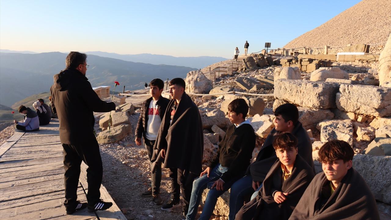 İl Kültür ve Turizm Müdürlüğü ekipleri ile Perre Mesleki ve Teknik Anadolu Lisesi öğrencileri, "Güneşin doğuşu ve batışının en güzel izlendiği yer" olarak bilinen Nemrut Dağı`nda, ziyaretçilere karanfil dağıtarak ören yerinin önemini anlattı.