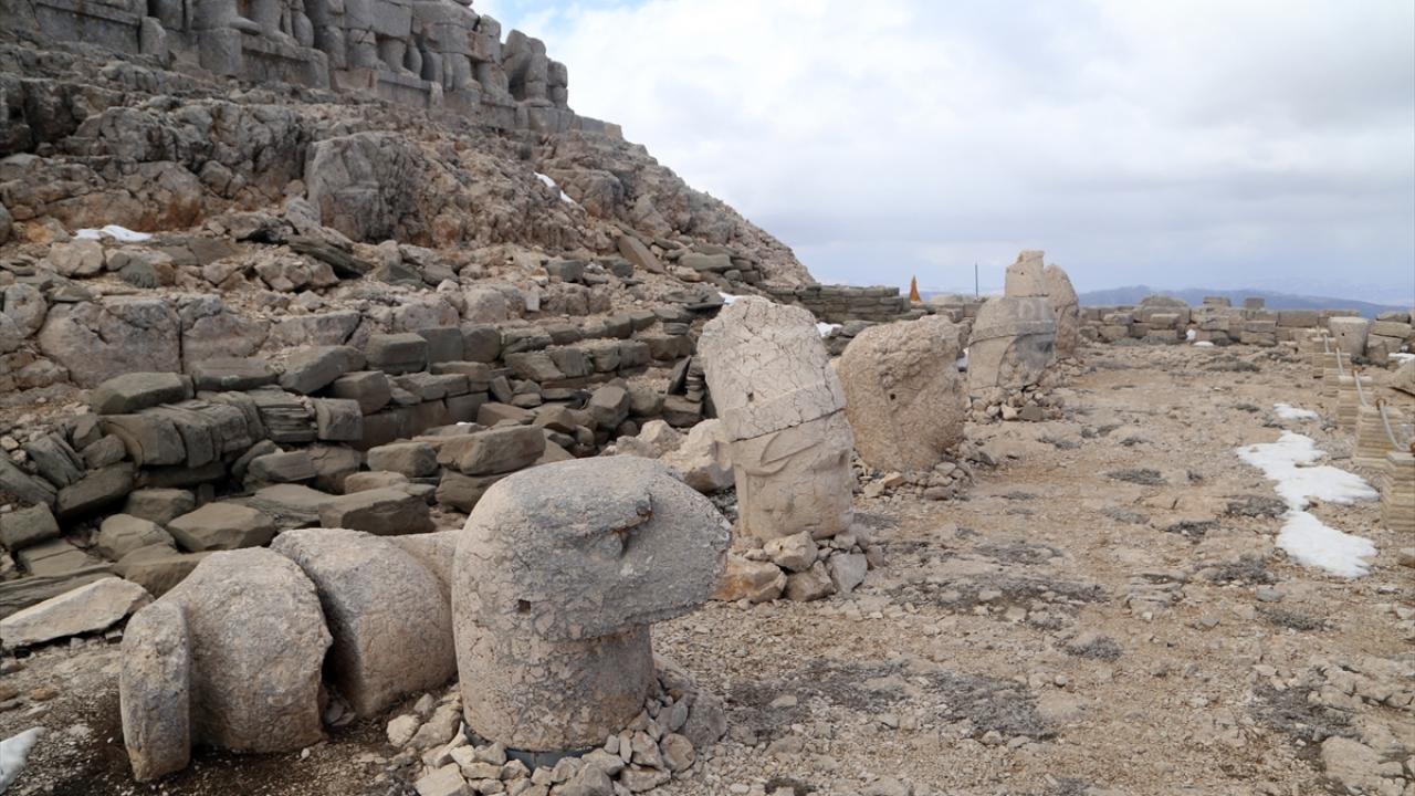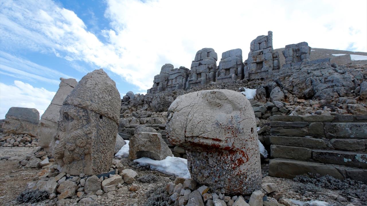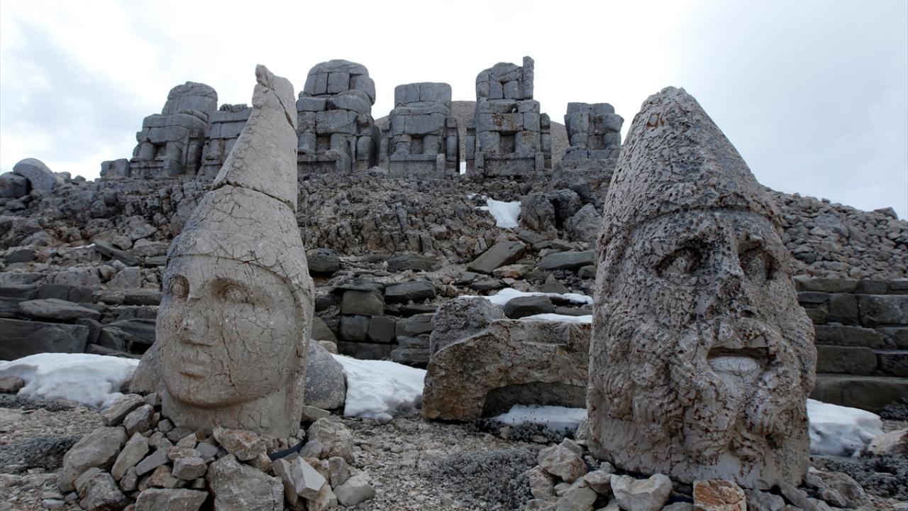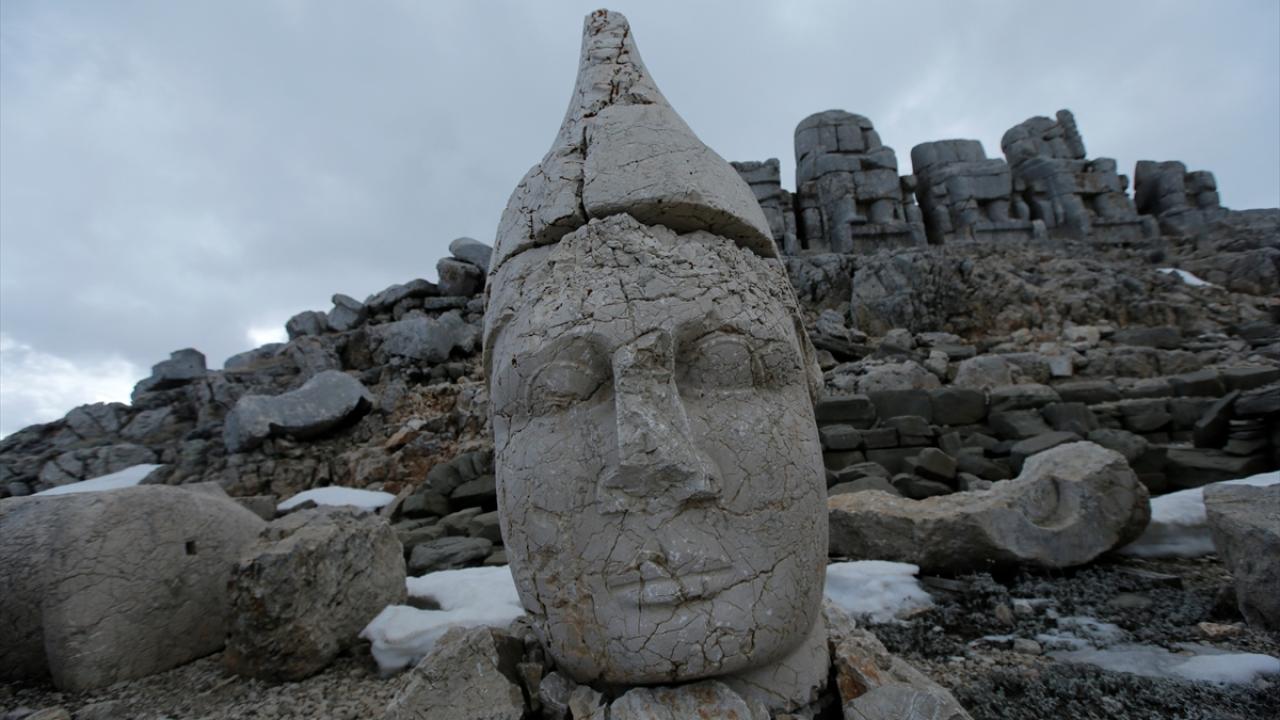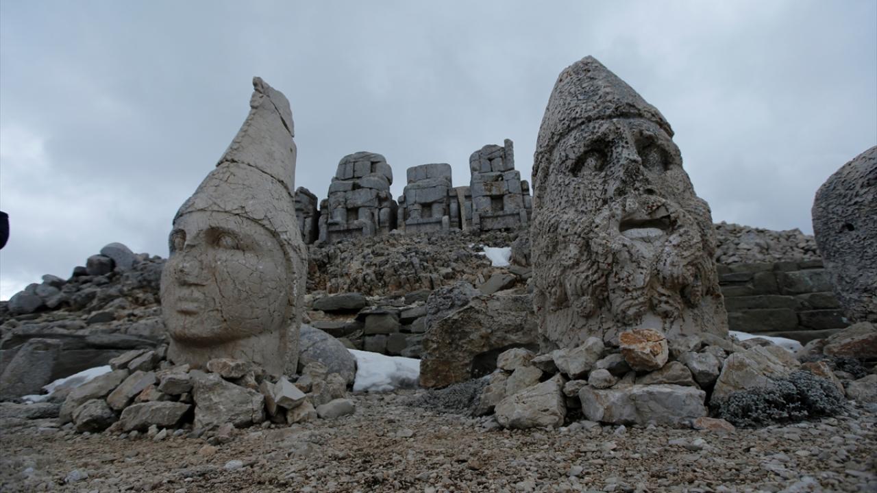 Doğu ve batı medeniyetlerinin kesişme noktasında bulunan, UNESCO Dünya Kültür Miras Listesi'ndeki 2 bin 150 metre rakımlı Nemrut Dağı Ören Yeri'nde bulunan anıtsal dev heykeller, depremleri zarar görmeden atlattı.