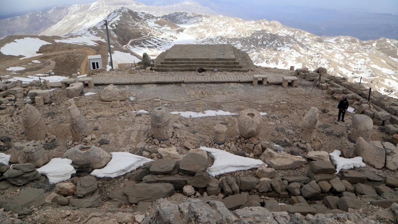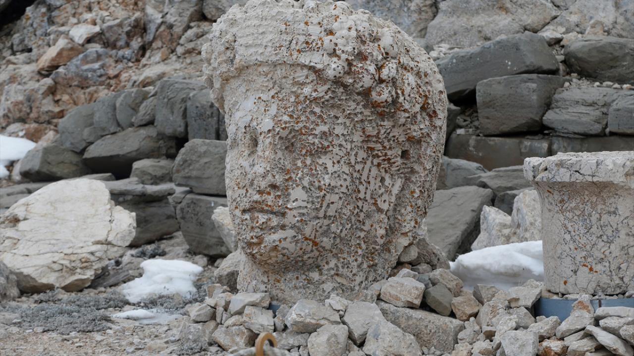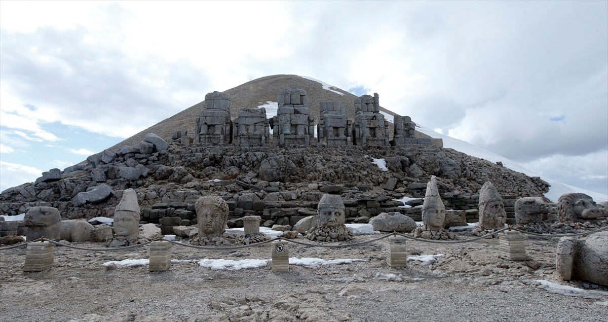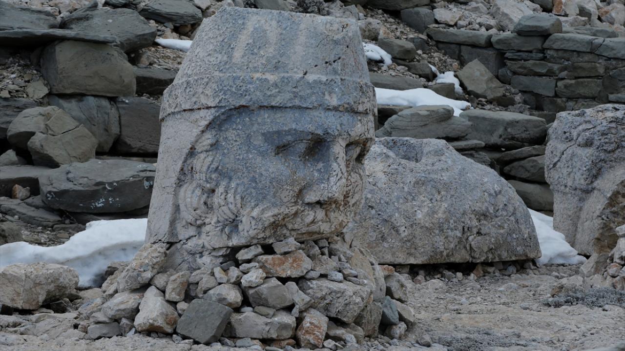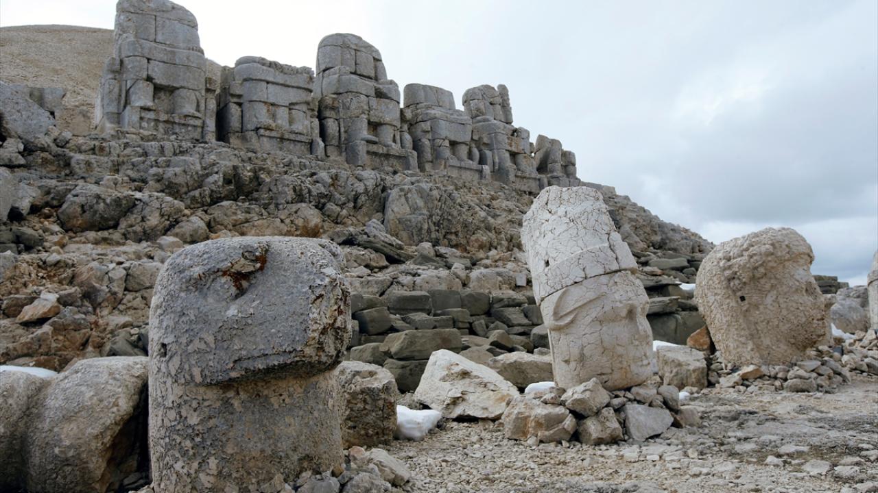 Doğu ve batı medeniyetlerinin kesişme noktasında bulunan, UNESCO Dünya Kültür Miras Listesi'ndeki 2 bin 150 metre rakımlı Nemrut Dağı Ören Yeri'nde bulunan anıtsal dev heykeller, depremleri zarar görmeden atlattı.