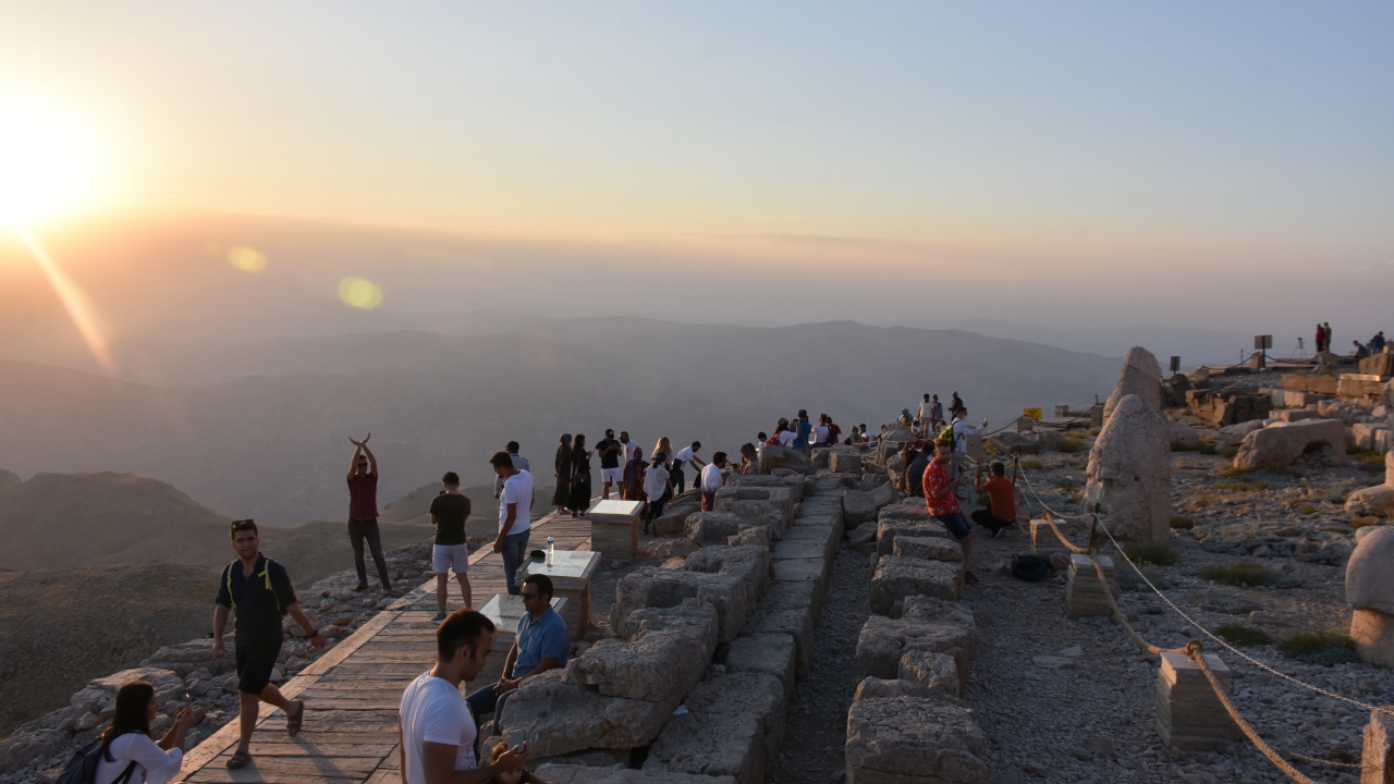 Doğu ve batı medeniyetlerinin kesişme noktasında bulunan, anıt mezarı, dev heykellerinin yanı sıra 2 bin 150 metre rakımıyla dünyada "güneşin doğuşunun ve batışının en güzel izlendiği yer" olarak da bilinen Nemrut Dağı, her yıl binlerce turist ağırlıyor. Turistler, bir yandan Nemrut'taki tarihi kalıntıları görme imkanı bulurken diğer yandan güneşin hayran bıraktıran batışını izlemenin keyfini çıkarıyor.