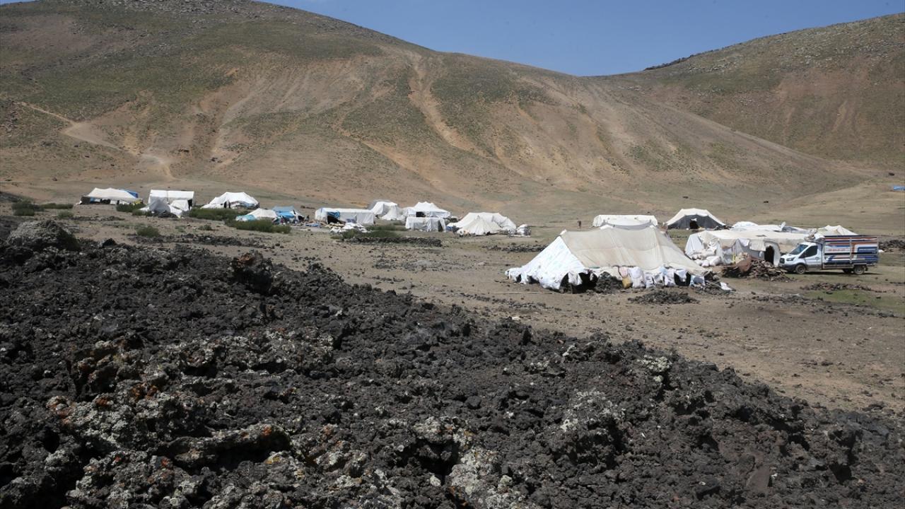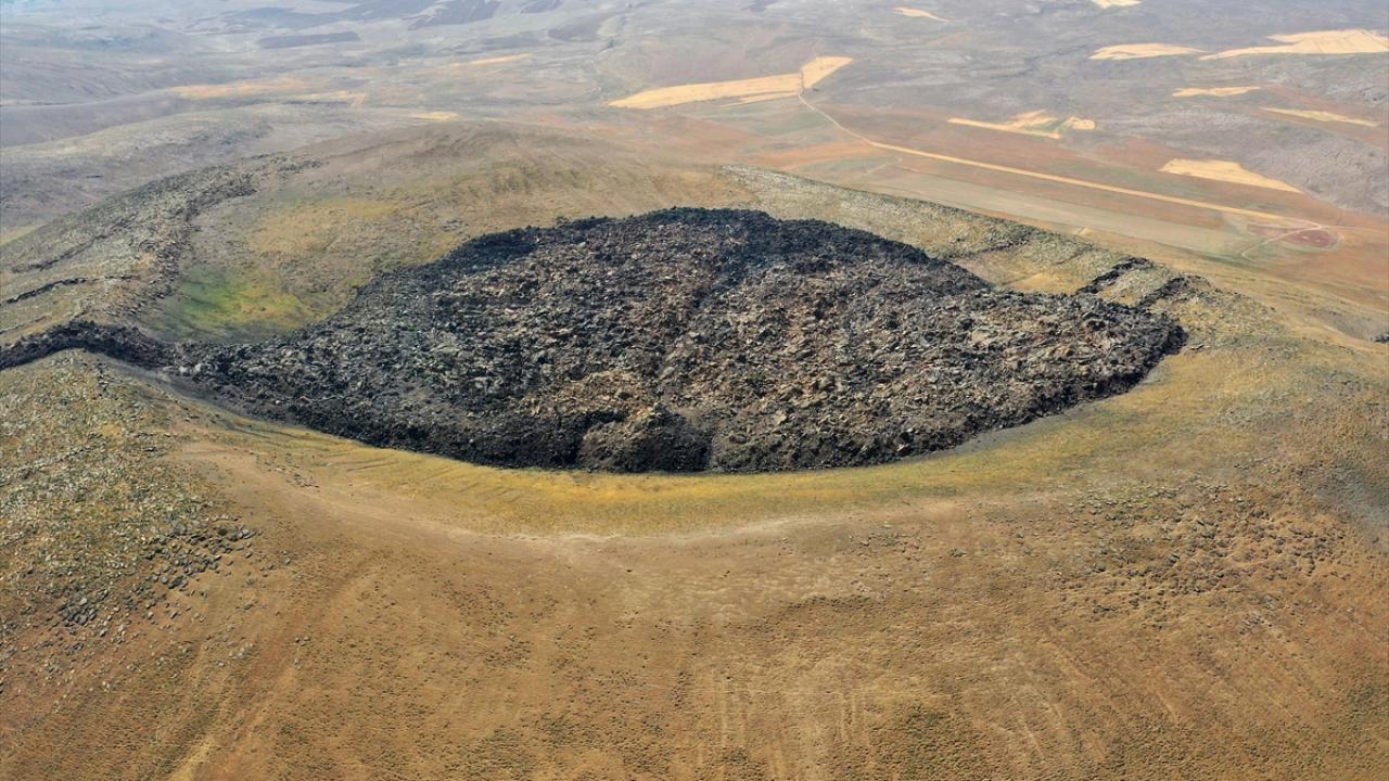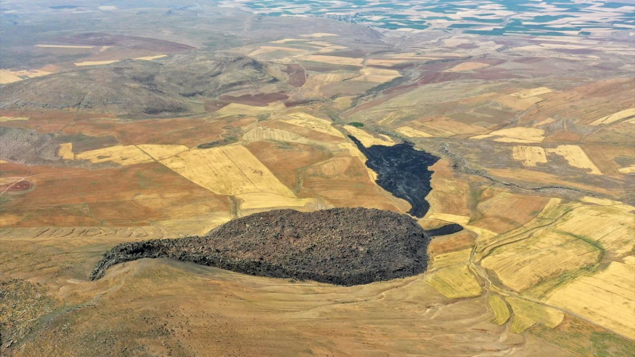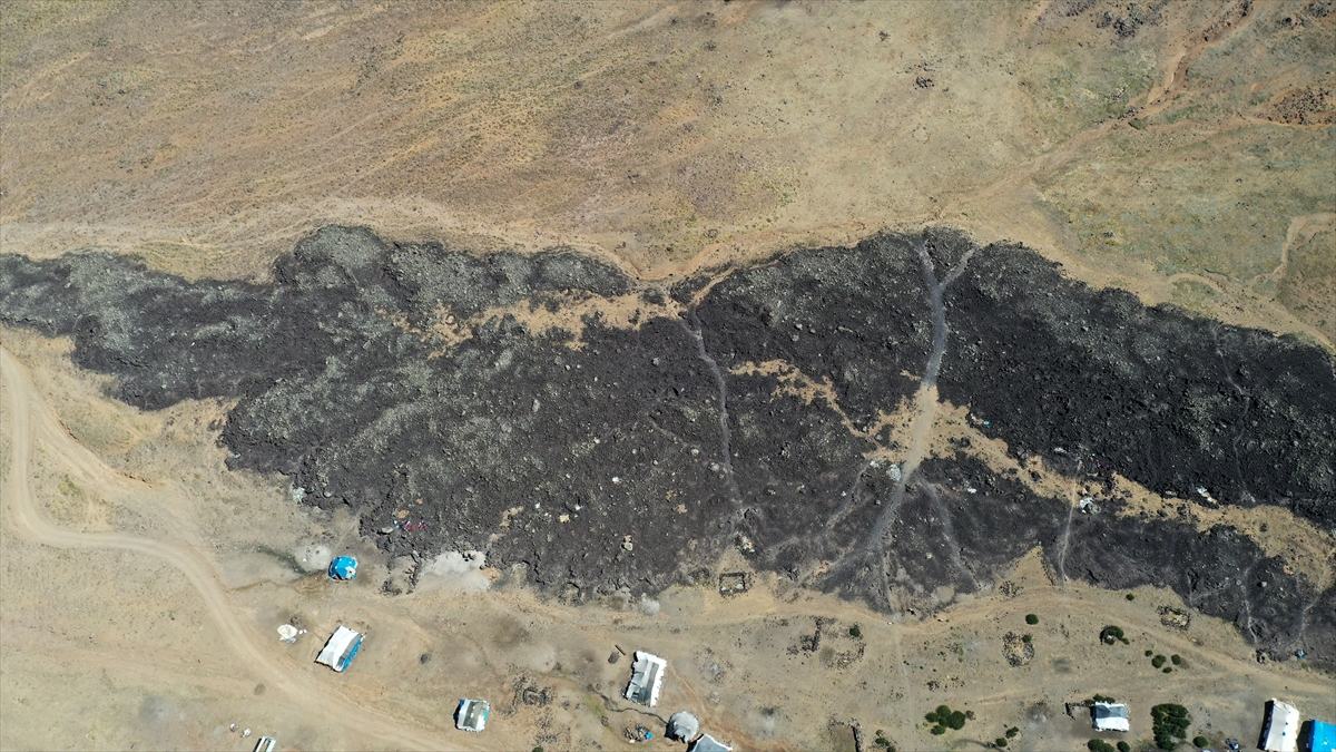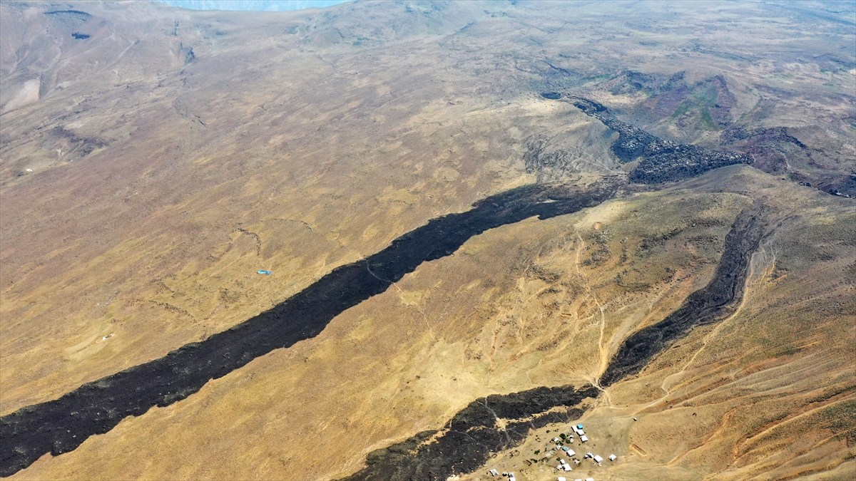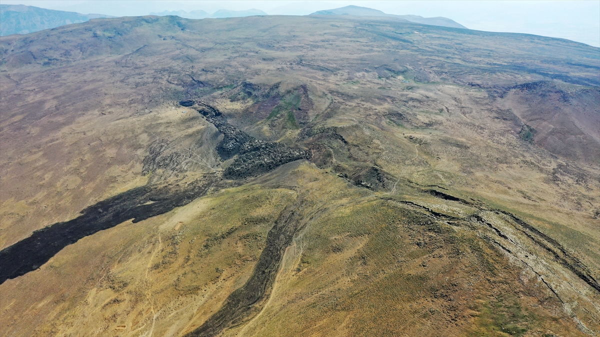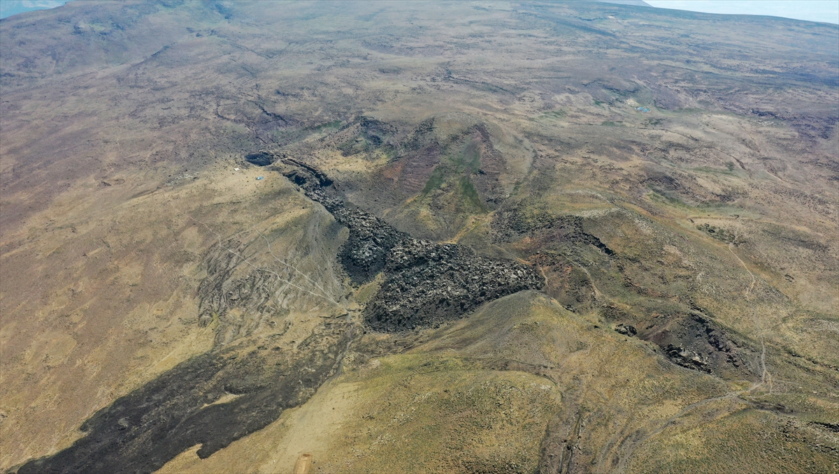 Nemrut Jeoparkı`ndaki lav kalıntıları dronla görüntülendi.