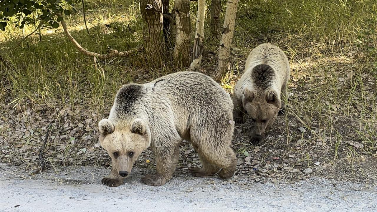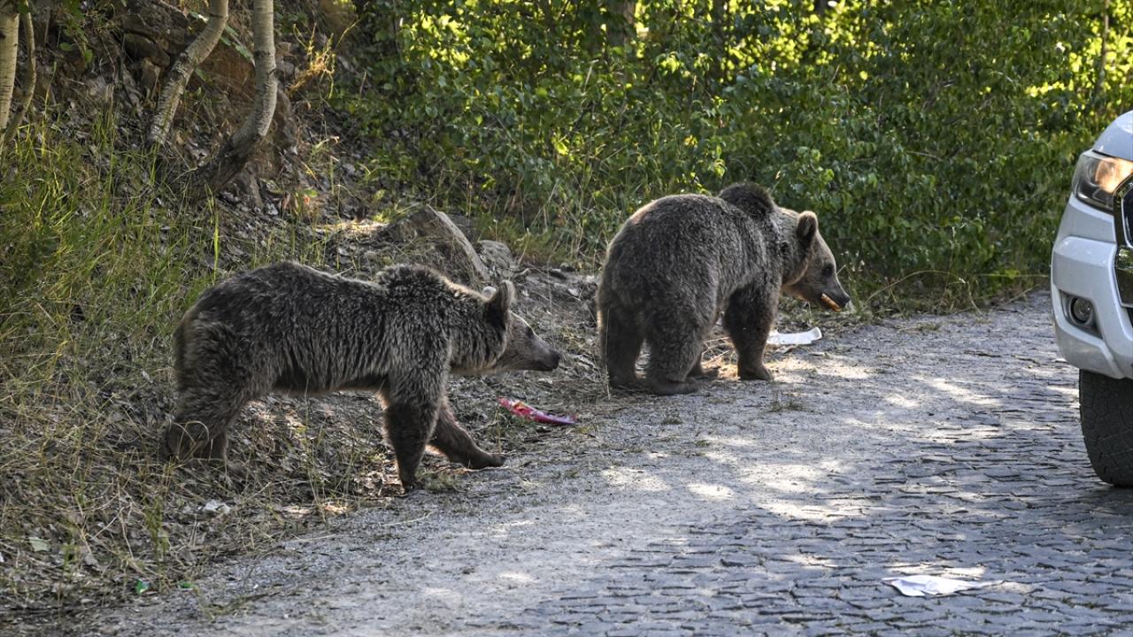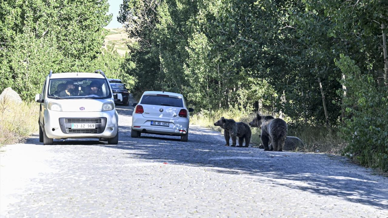 Krater gölüne giden yolda bir grup boz ayı gören ziyaretçiler, araçlarını durdurarak görüntü aldı. Bazı ziyaretçilerin ayılara yiyecek attıkları görüldü.