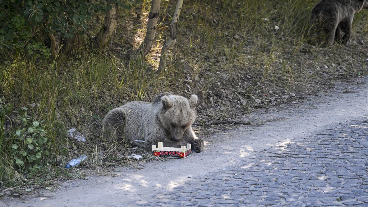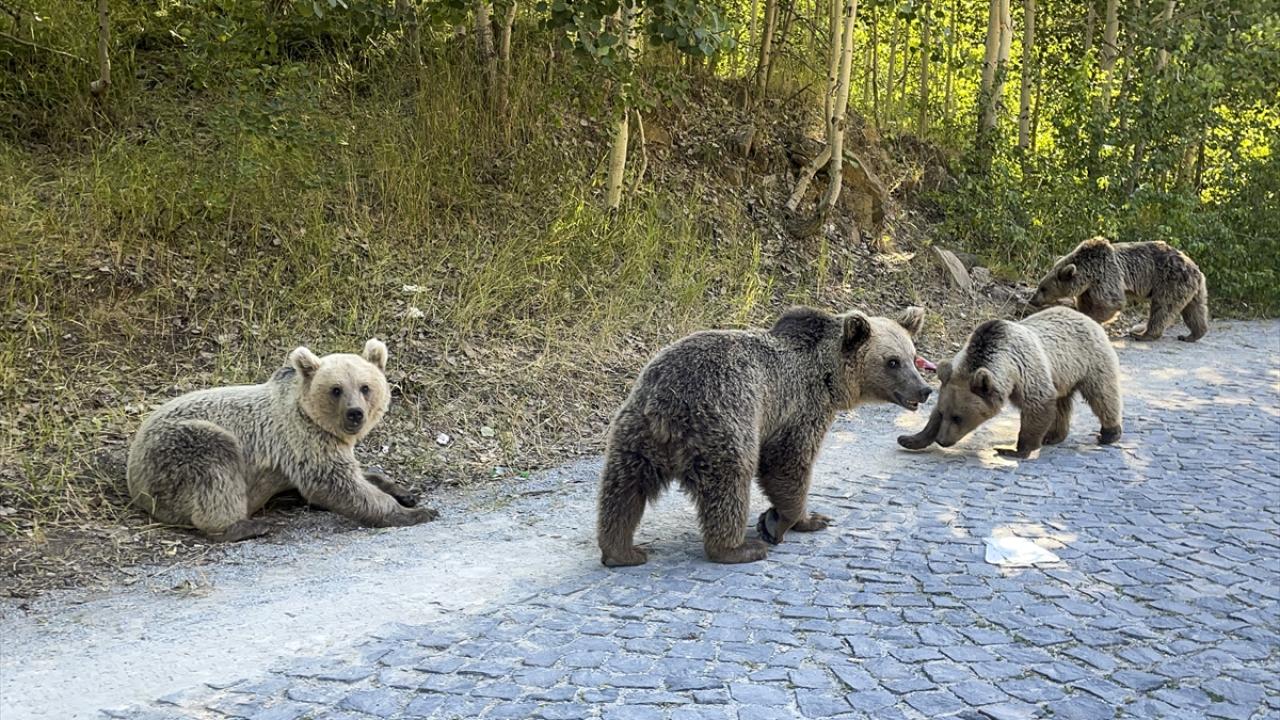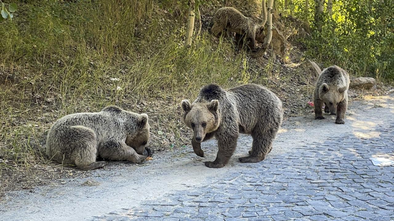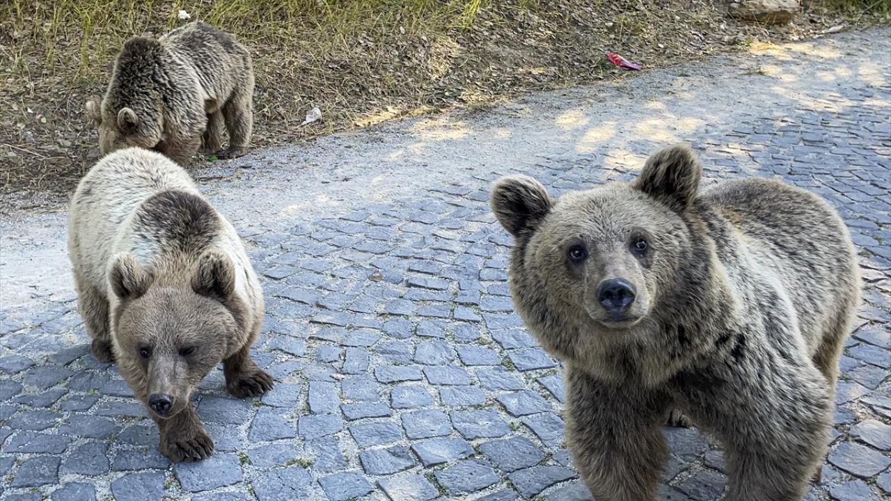 Krater gölüne giden yolda bir grup boz ayı gören ziyaretçiler, araçlarını durdurarak görüntü aldı. Bazı ziyaretçilerin ayılara yiyecek attıkları görüldü.