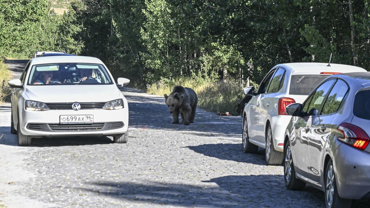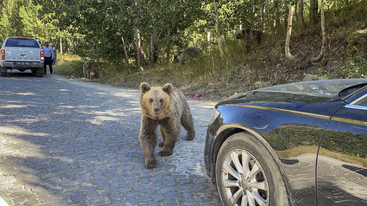 Hafta sonu için Nemrut Kalderası`nı tercih eden ziyaretçiler, boz ayılarla karşılaşmanın heyecanını yaşadı.