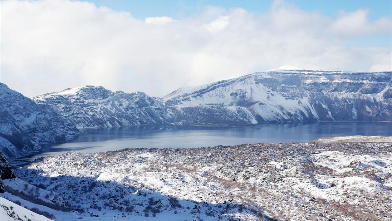Bitlis'in Tatvan ilçesindeki Nemrut Krater Gölü karla kaplandı. Avrupalı Seçkin Destinasyonlar (EDEN) projesi kapsamında "Mükemmeliyet Ödülü" alan 2 bin 250 rakımdaki Nemrut Krater Gölü, kentte etkili olan karla beyaza büründü.